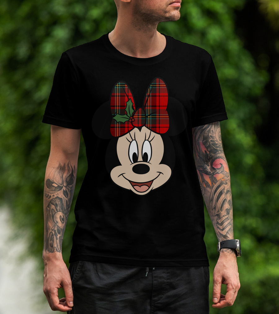 Minnie Mouse Red Plaid Bow With Holly Disney T-Shirt