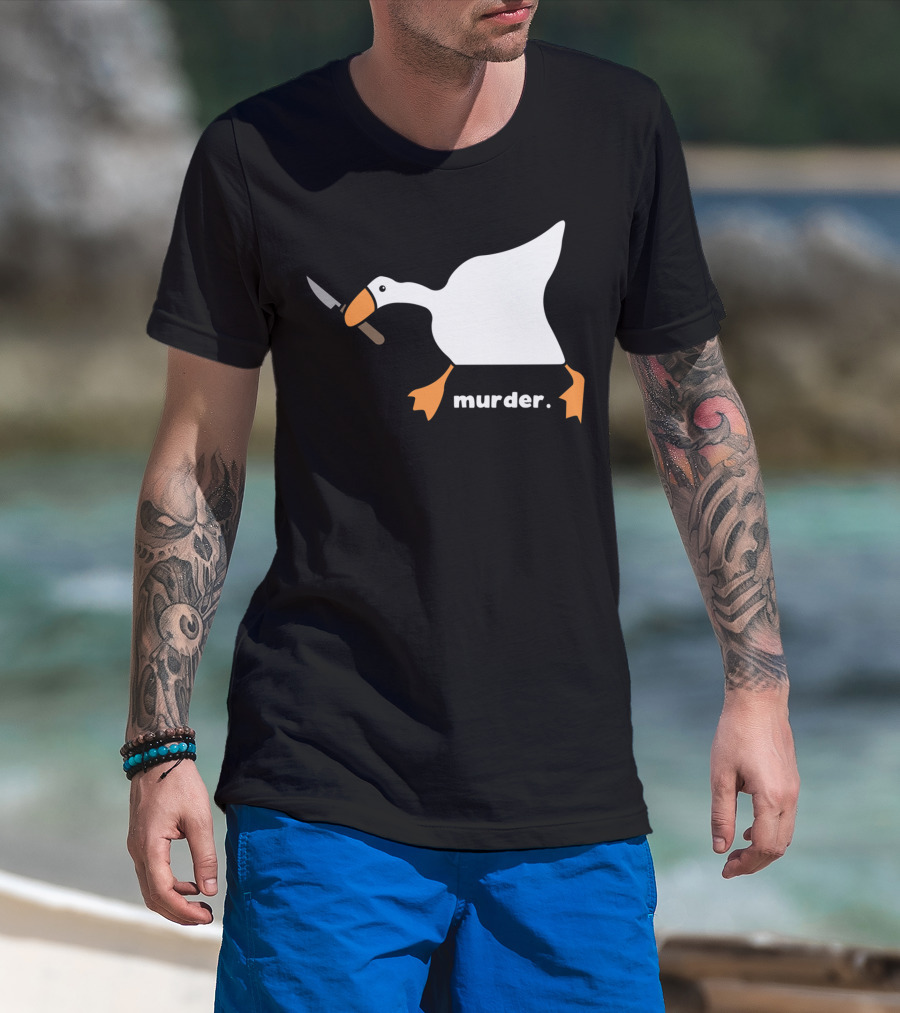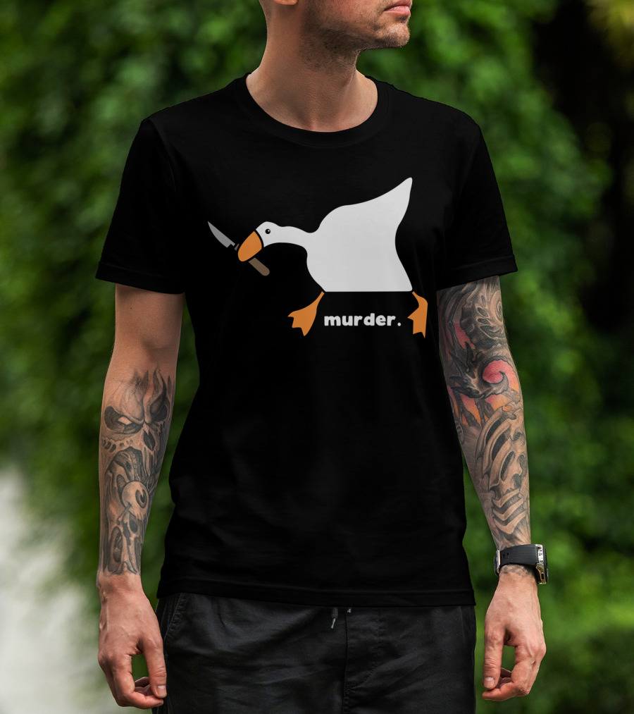 The Murder Goose with Knife Funny T-shirt is designed for everyday wear and a consistent fit. Fabric is pre-shrunk ring-spun cotton with durable stitching. See the size chart below for exact measurements.