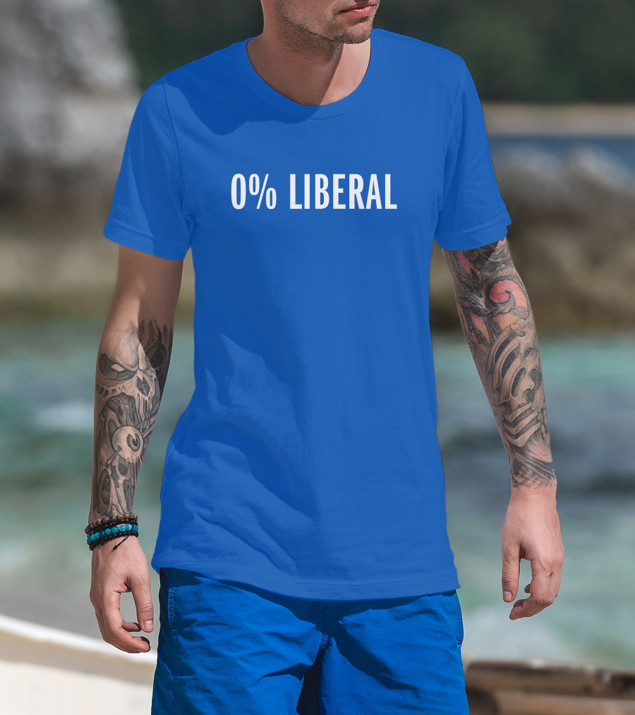 The Zeek Arkham 0% Liberal Statement Bold Blue Background T-shirt is designed for everyday wear and a consistent fit. Fabric is pre-shrunk ring-spun cotton with durable stitching. See the size chart below for exact measurements.