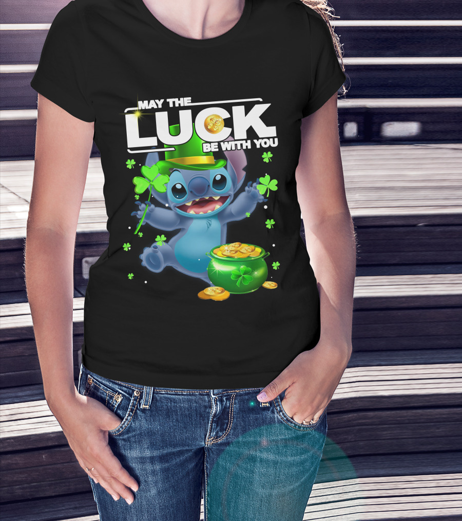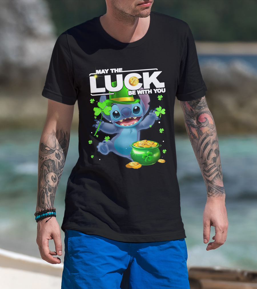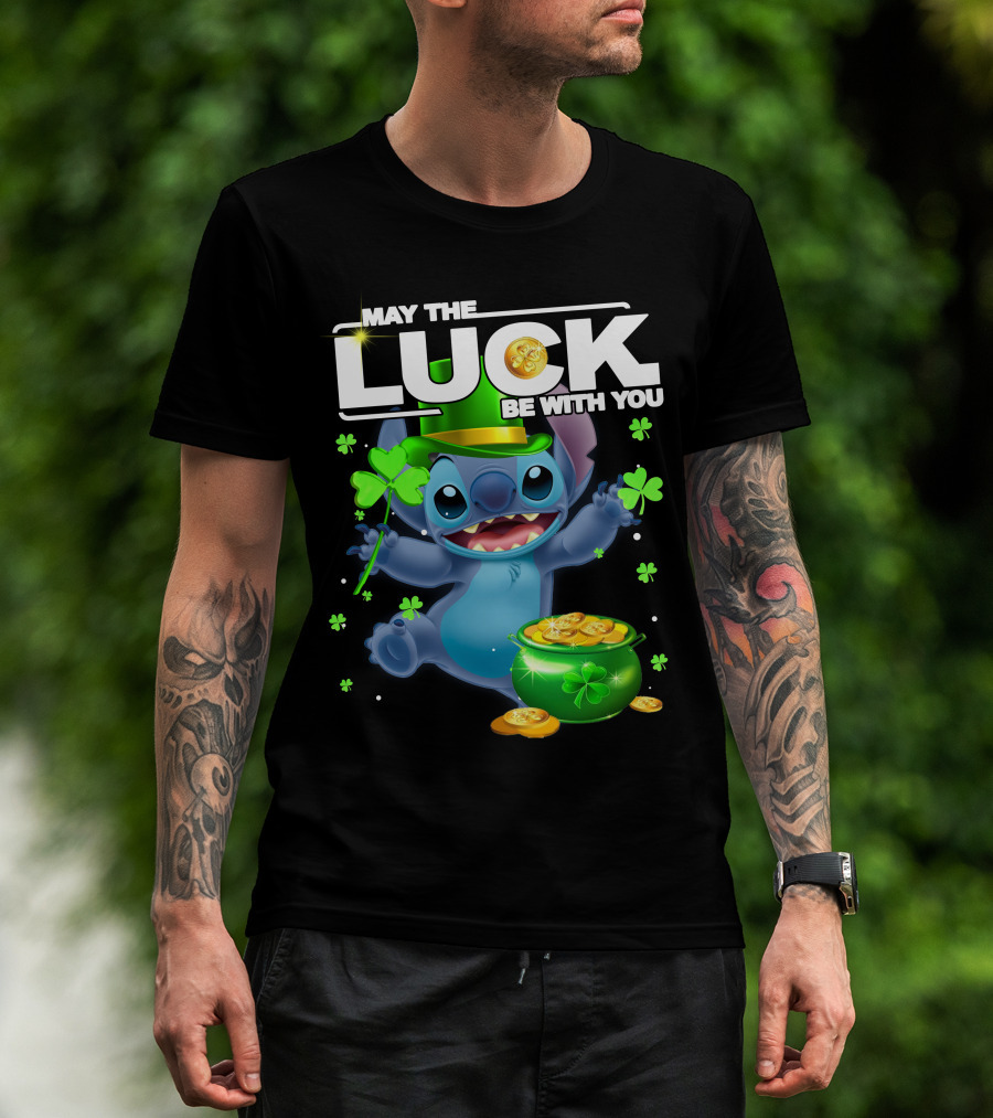 May The Luck Be With You Stitch Pot Of Gold Shamrocks T-Shirt