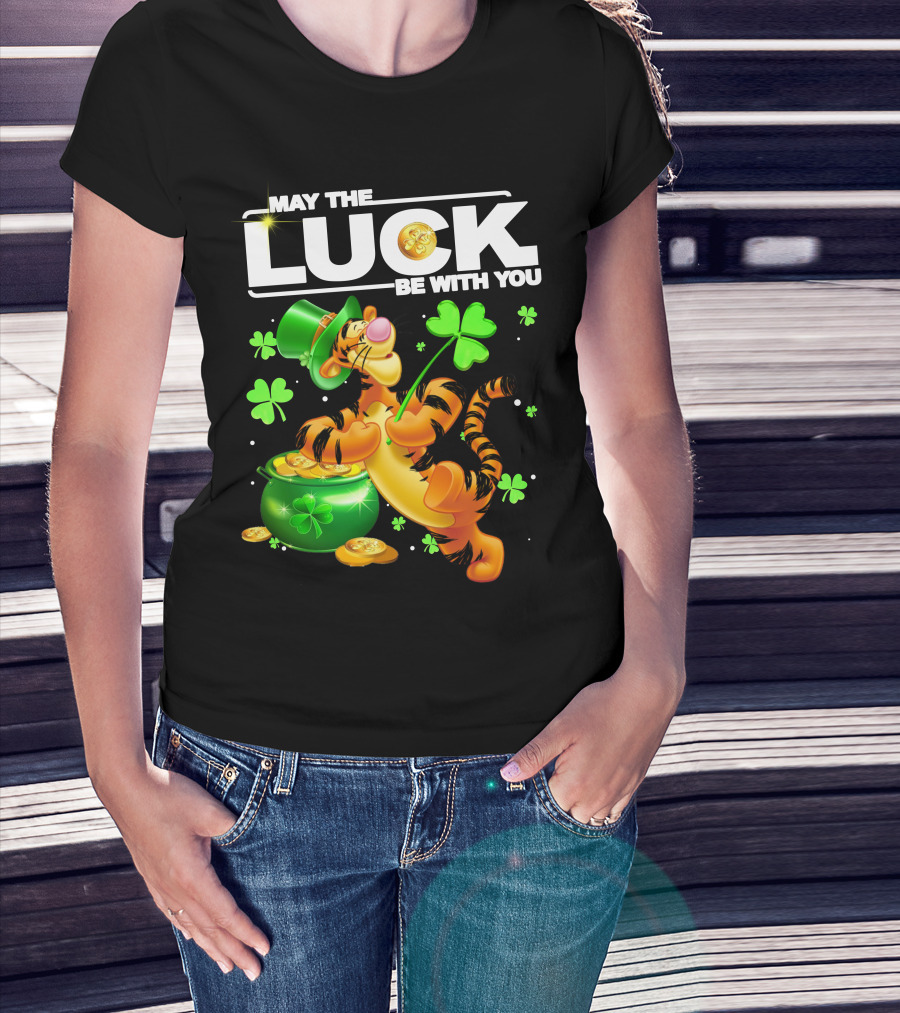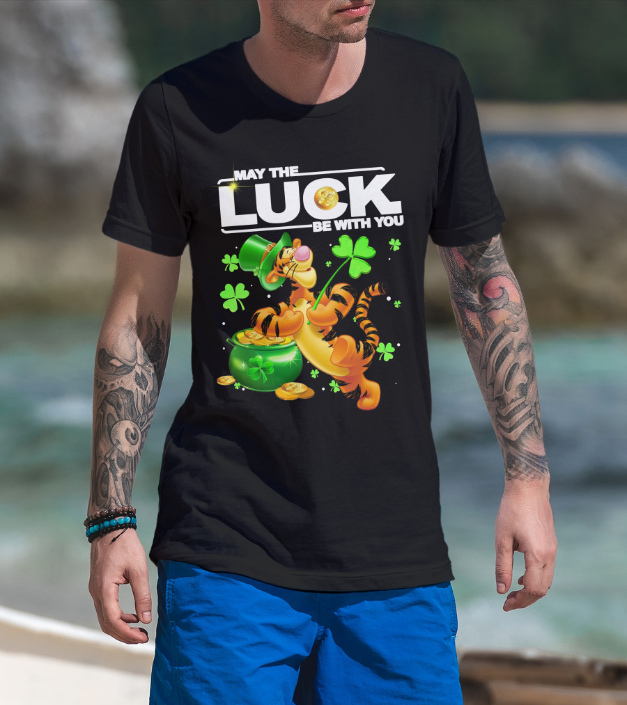 May The Luck Be With You Tigger With Pot Of Gold And Shamrocks T-Shirt
