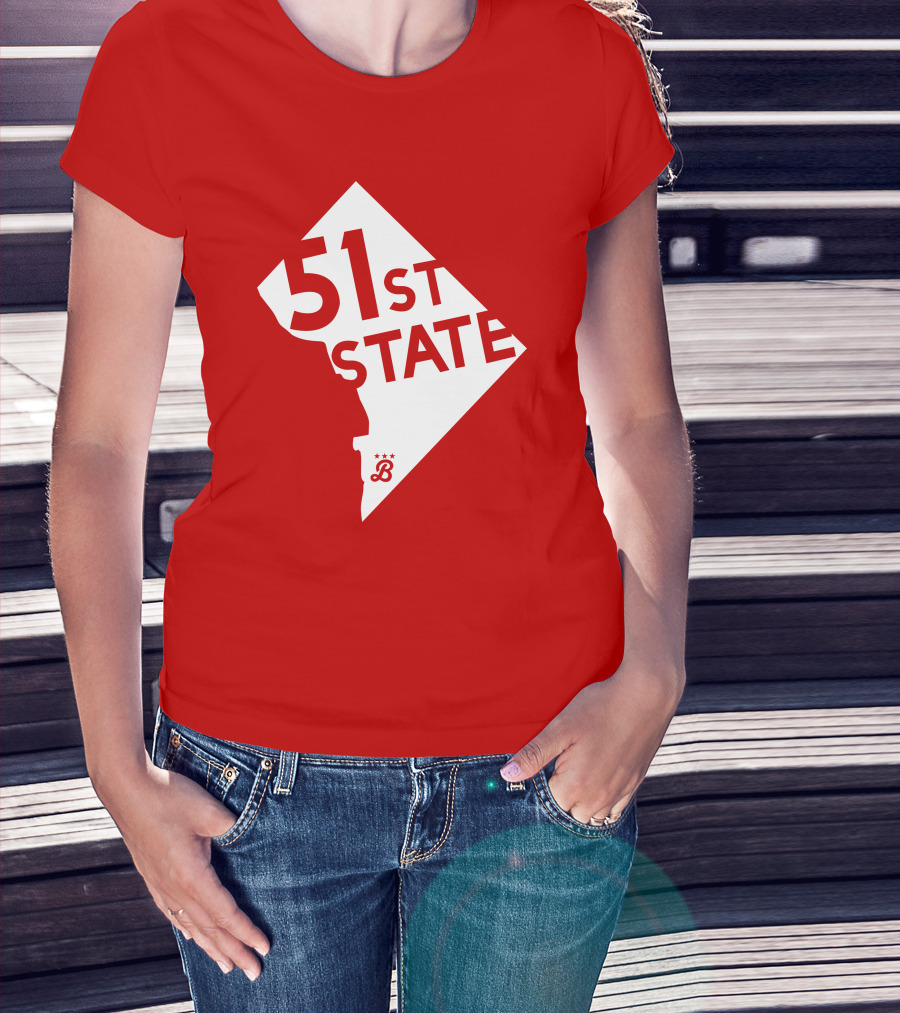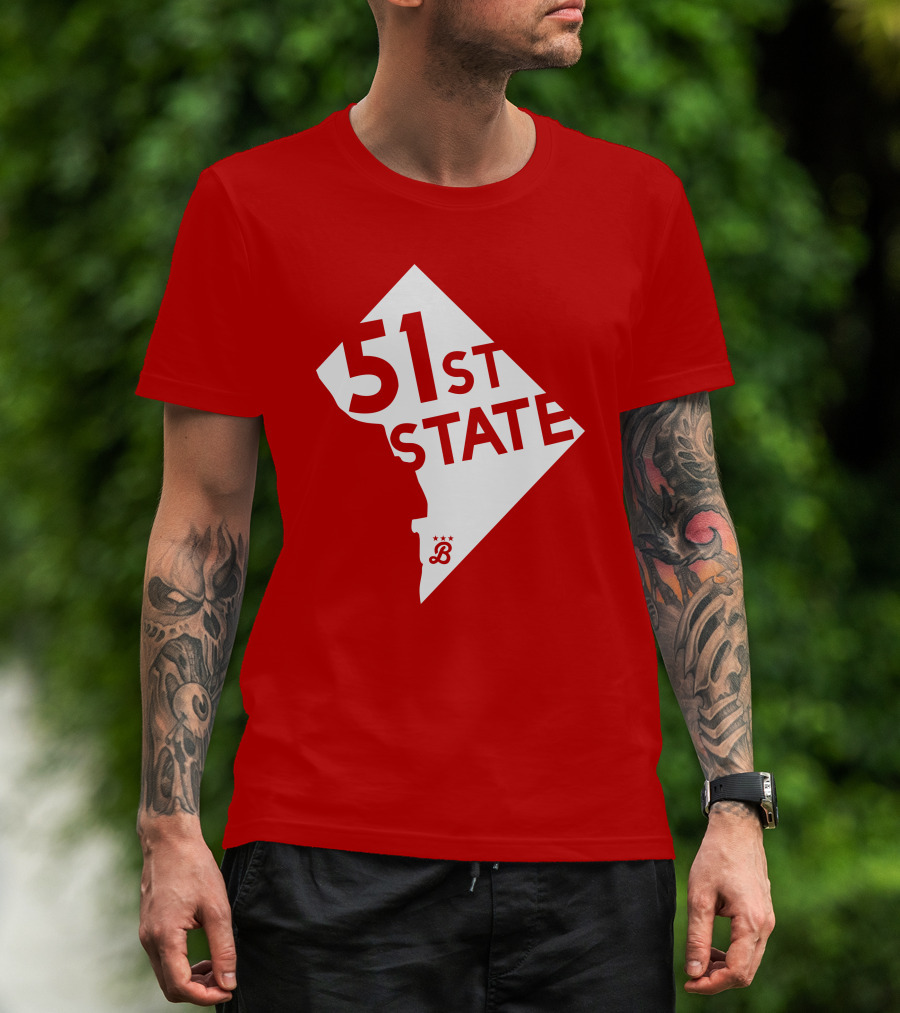 The Juan Soto 51St State Wear Bailiwick Washington DC 51st State Outline T-shirt is designed for everyday wear and a consistent fit. Fabric is pre-shrunk ring-spun cotton with durable stitching. See the size chart below for exact measurements.