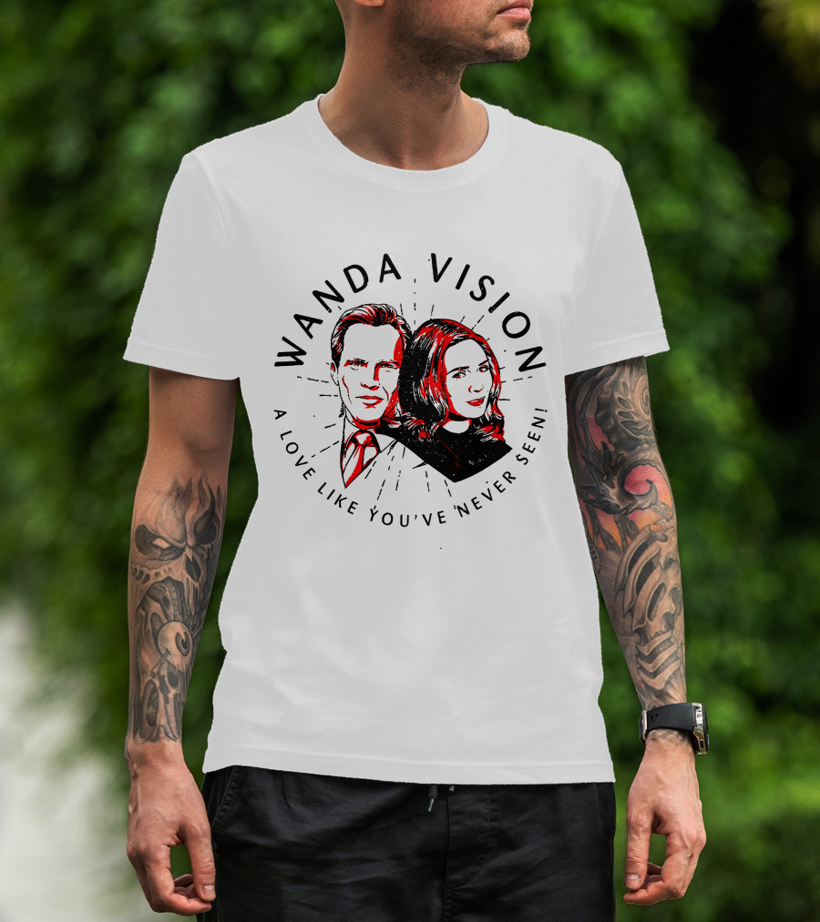 The WandaVision A Love Like You've Never Seen T-shirt is designed for everyday wear and a consistent fit. Fabric is pre-shrunk ring-spun cotton with durable stitching. See the size chart below for exact measurements.