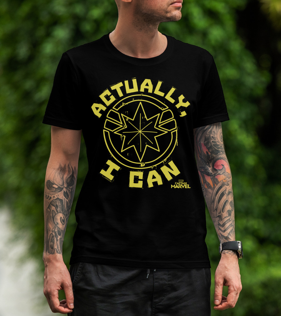 Captain Marvel Actually I Can Yellow Starburst T-Shirt