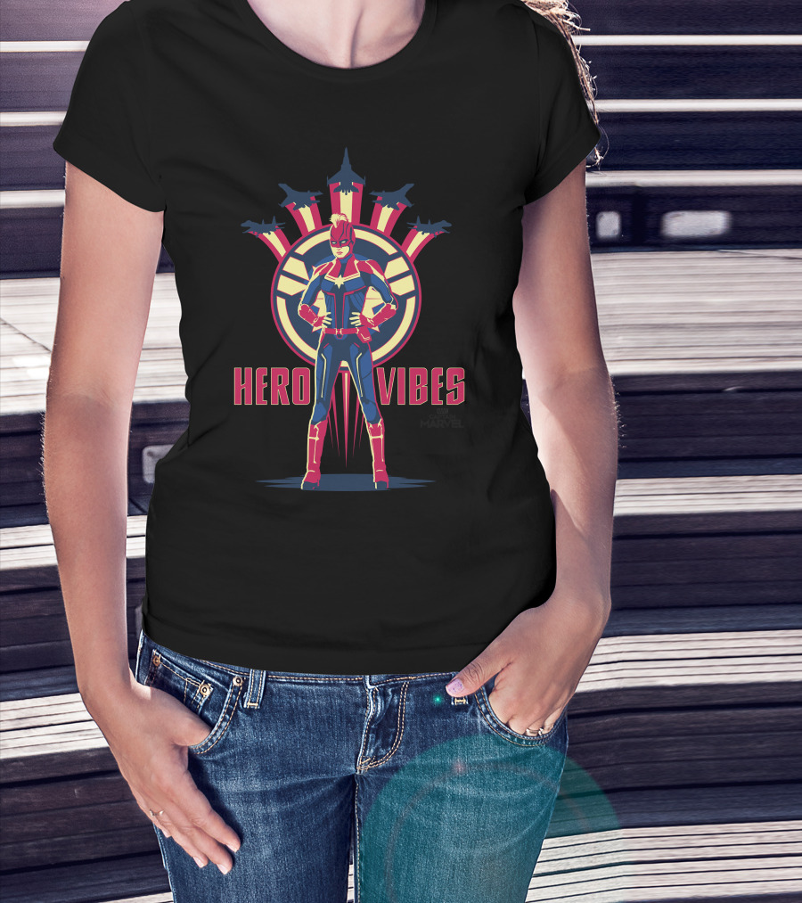Captain Marvel Hero Vibes With Planes And Iconic Emblem T-Shirt