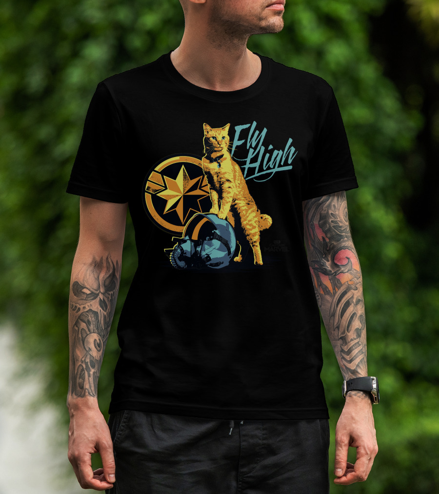 Captain Marvel Symbol Fly High Goose Cat Helmet T-Shirt