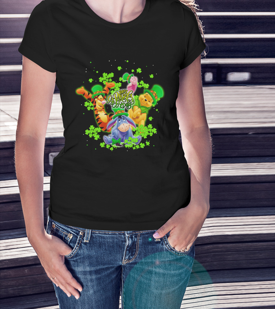 Happy St. Patrick's Day Winnie The Pooh Tigger Eeyore Piglet T-Shirt