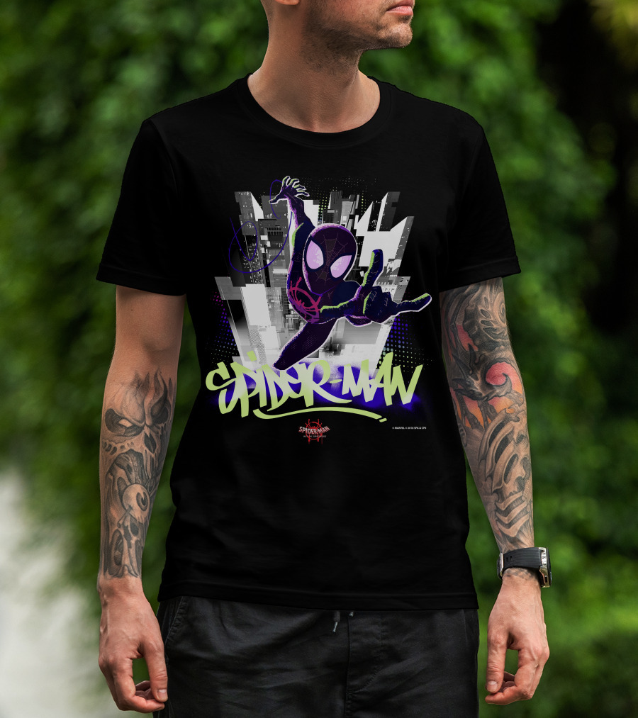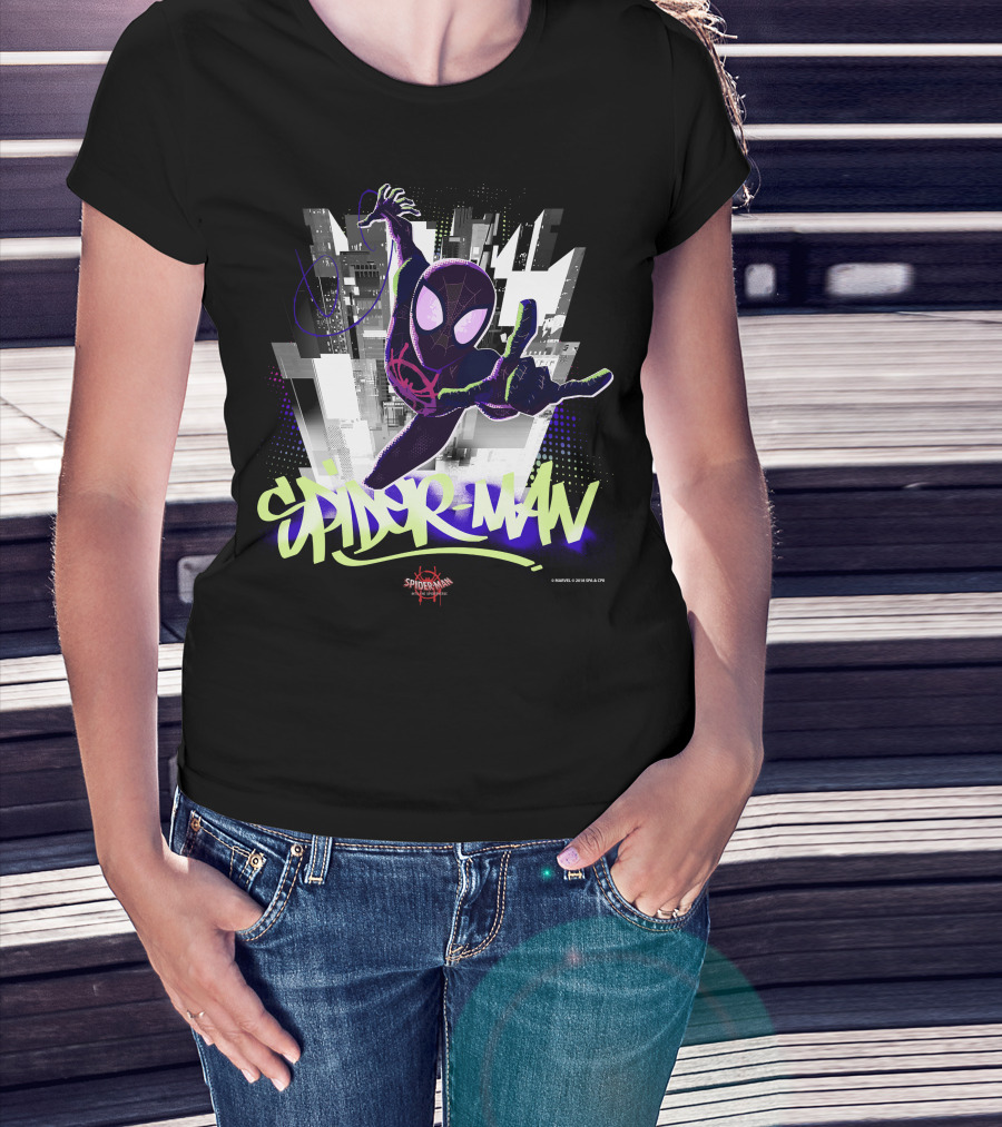 Spider-Man Spiderverse Graffiti City Marvel Iconic Swing Pose T-Shirt