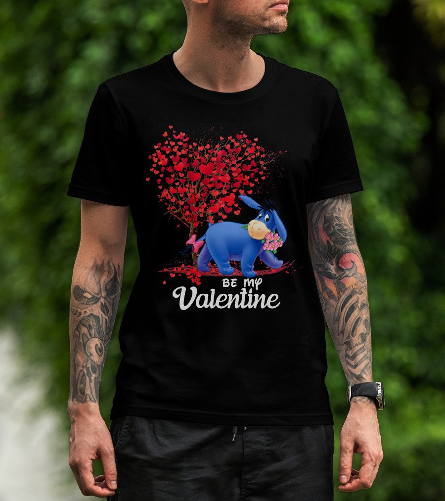 Be My Valentine Eeyore Donkey With Hearts And Flowers T-Shirt