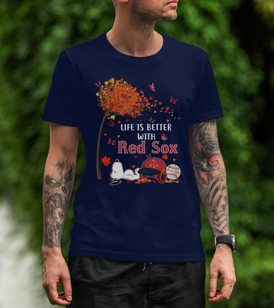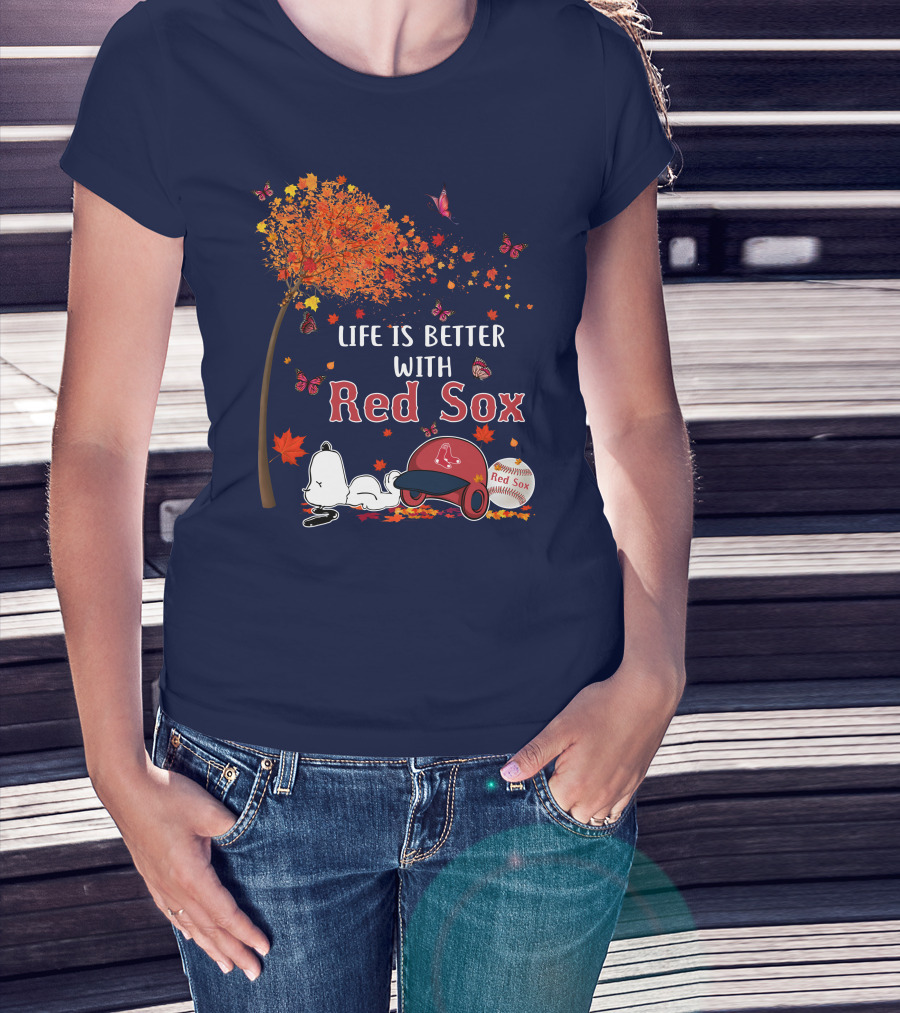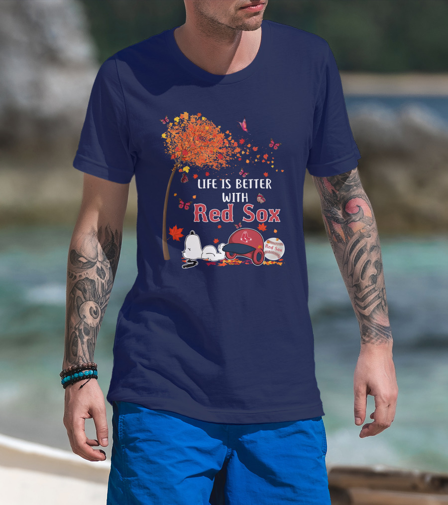 Life Is Better With Red Sox Tree Butterflies Baseball T-Shirt