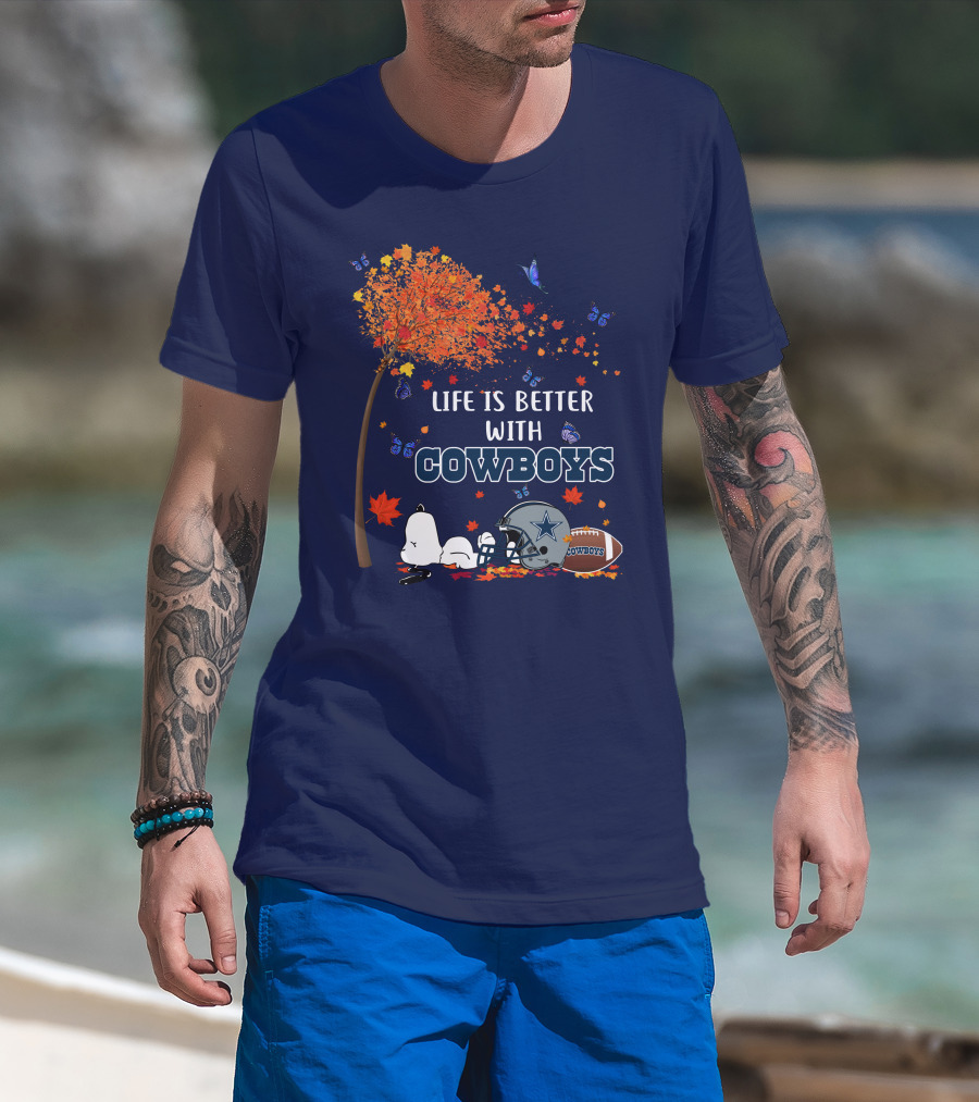 Life Is Better With Cowboys Snoopy Dallas Football Autumn T-Shirt