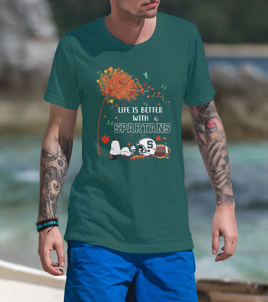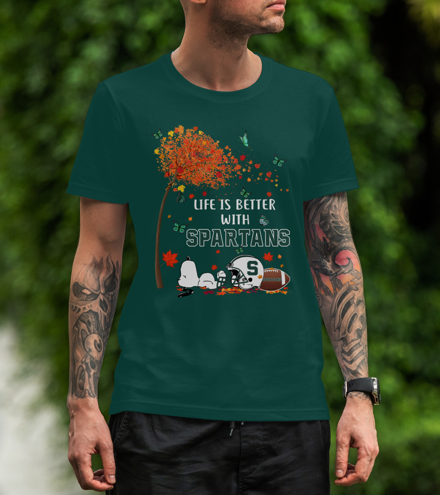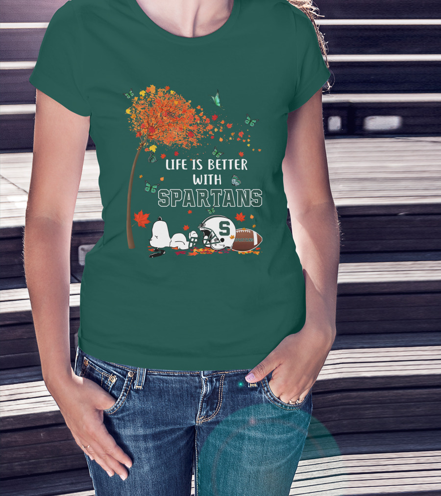 Life Is Better With Spartans Michigan State Football Autumn Leaves Butterflies T-Shirt