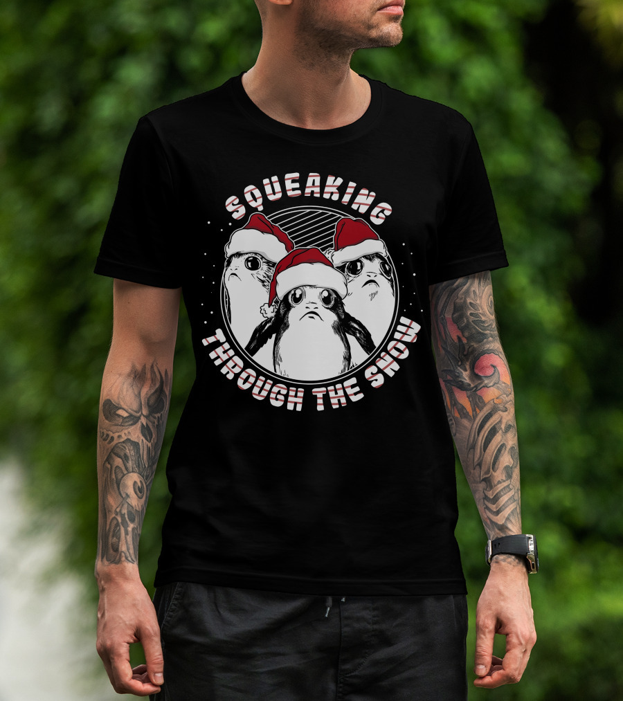 Squeaking Through The Snow Star Wars Porg Santa Hat T-Shirt