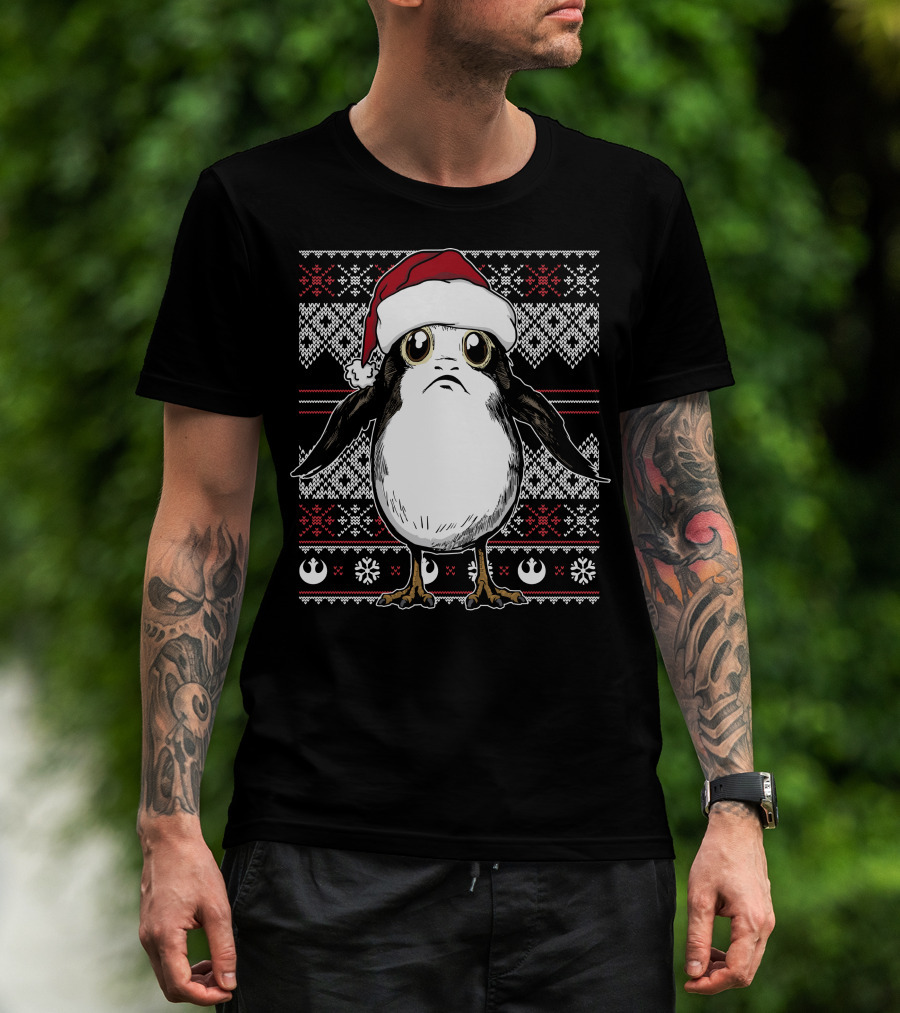 Star Wars Porg Christmas Santa Hat Ugly T-Shirt