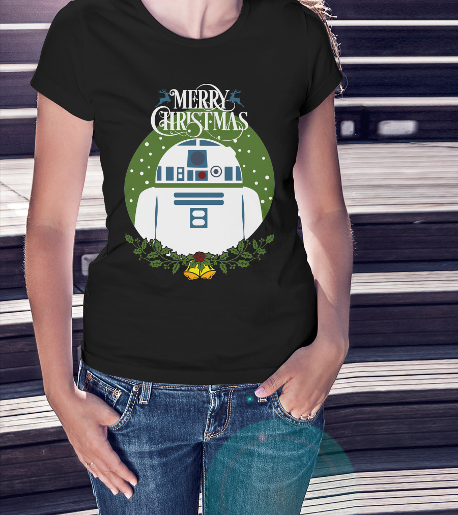 Star Wars R2-D2 Merry Christmas Wreath With Bells And Holly T-Shirt