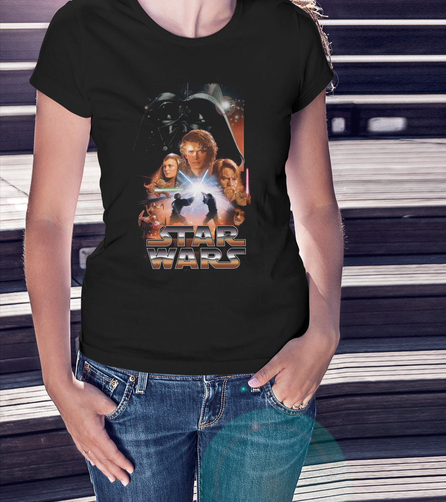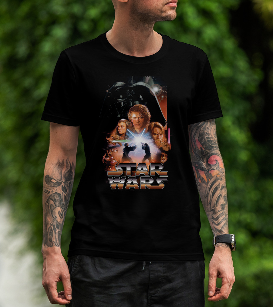 Star Wars Revenge Of The Sith Movie Anakin Obi-Wan Lightsaber Duel Darth Vader Collage T-Shirt