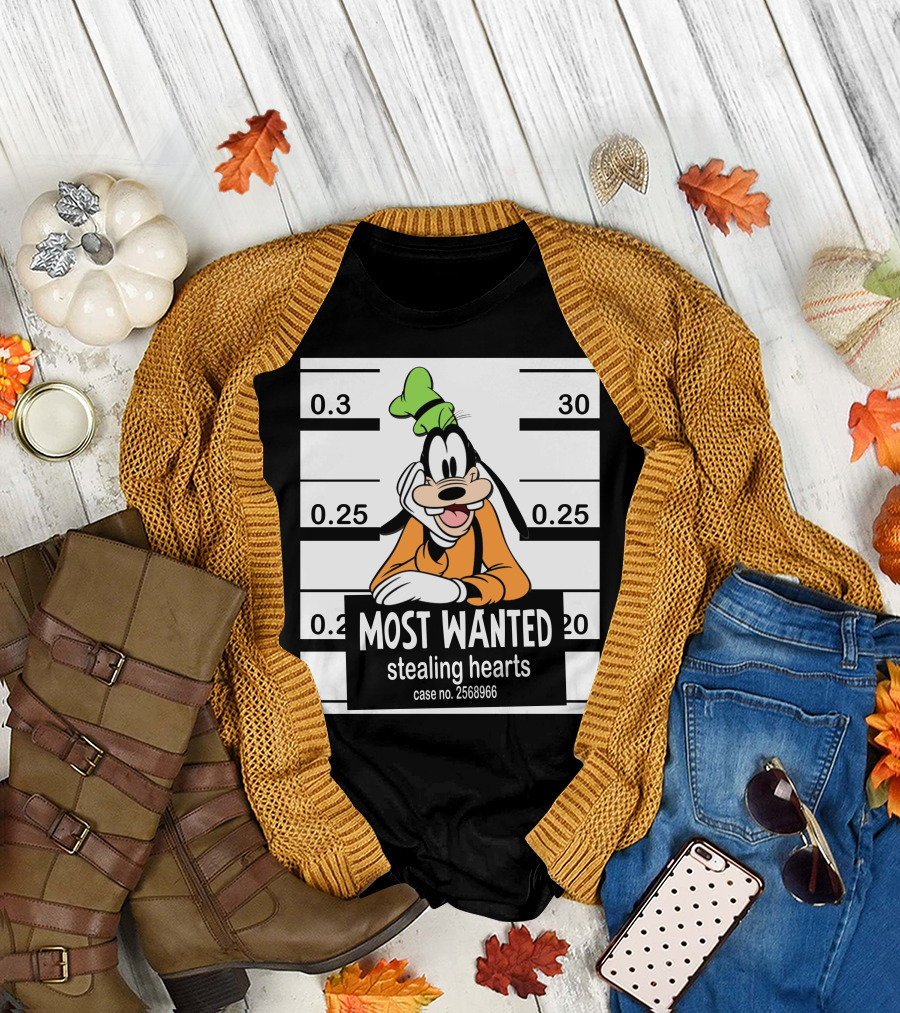 The Most Wanted Goofy Stealing Hearts Case No. 2568966 T-shirt is designed for everyday wear and a consistent fit. Fabric is pre-shrunk ring-spun cotton with durable stitching. See the size chart below for exact measurements.