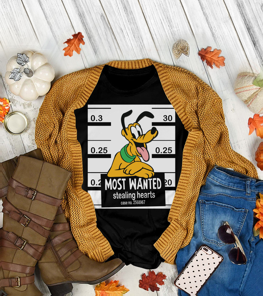 The Most Wanted Pluto Stealing Hearts Case No. 2568967 T-shirt is designed for everyday wear and a consistent fit. Fabric is pre-shrunk ring-spun cotton with durable stitching. See the size chart below for exact measurements.