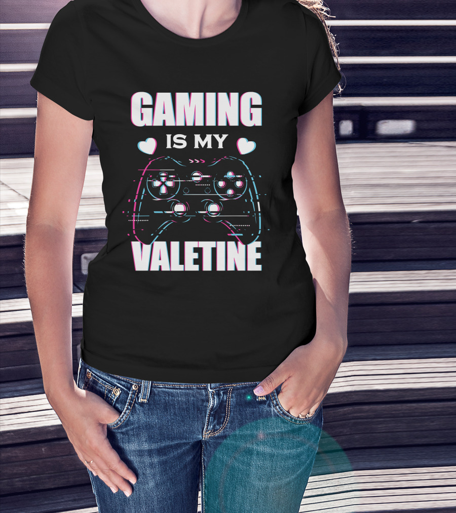 Gaming Is My Valentine Controller Hearts Glitch Effect T-Shirt