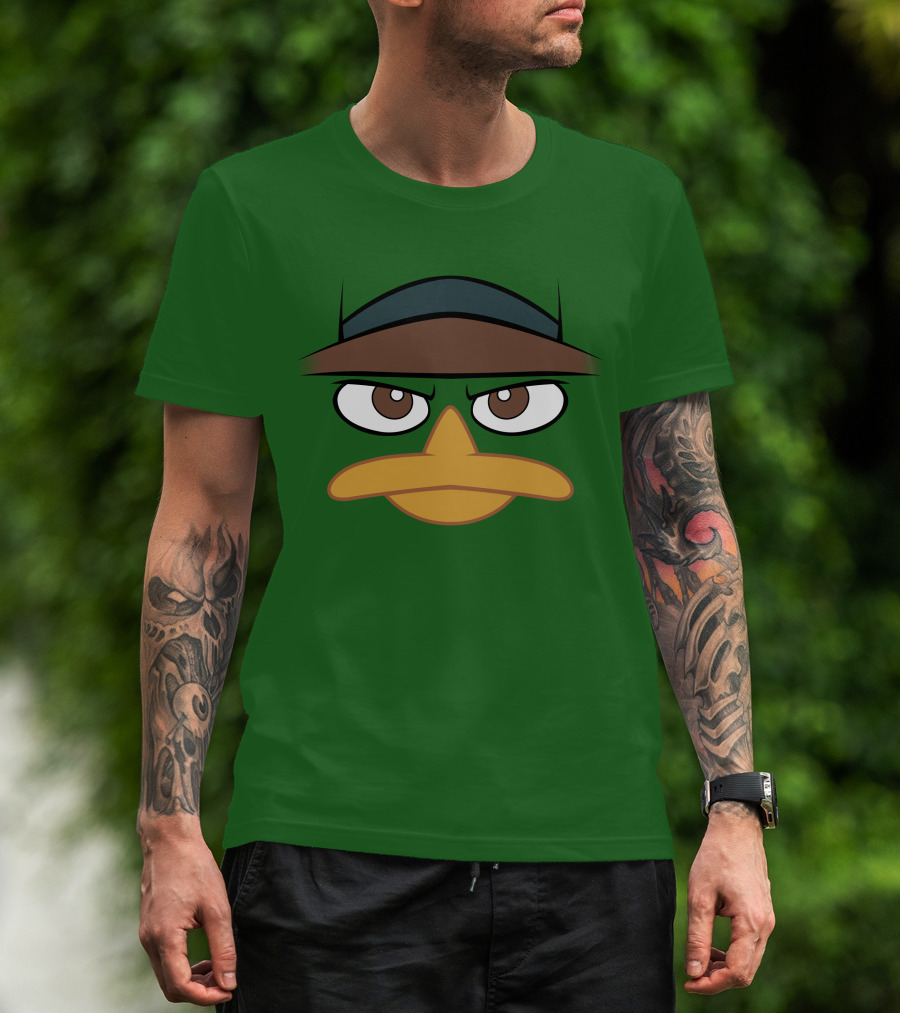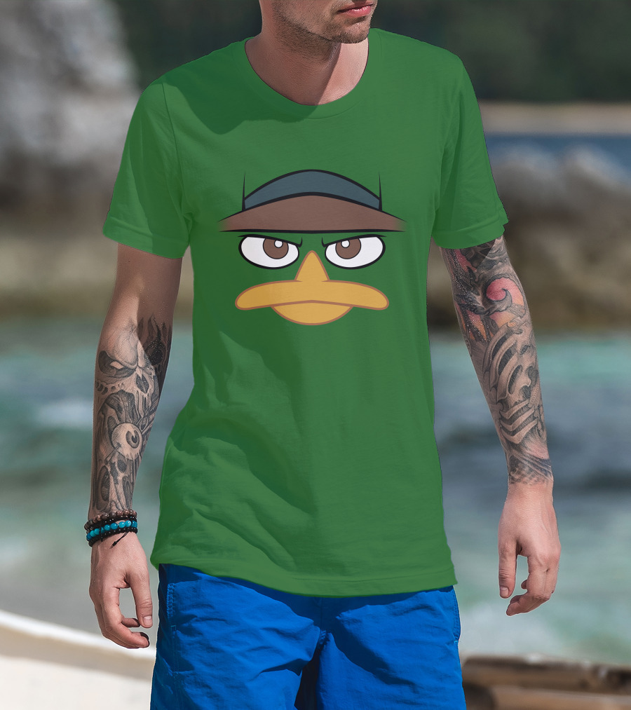 Agent P Perry The Platypus Face Green Hat Eyes Beak T-Shirt
