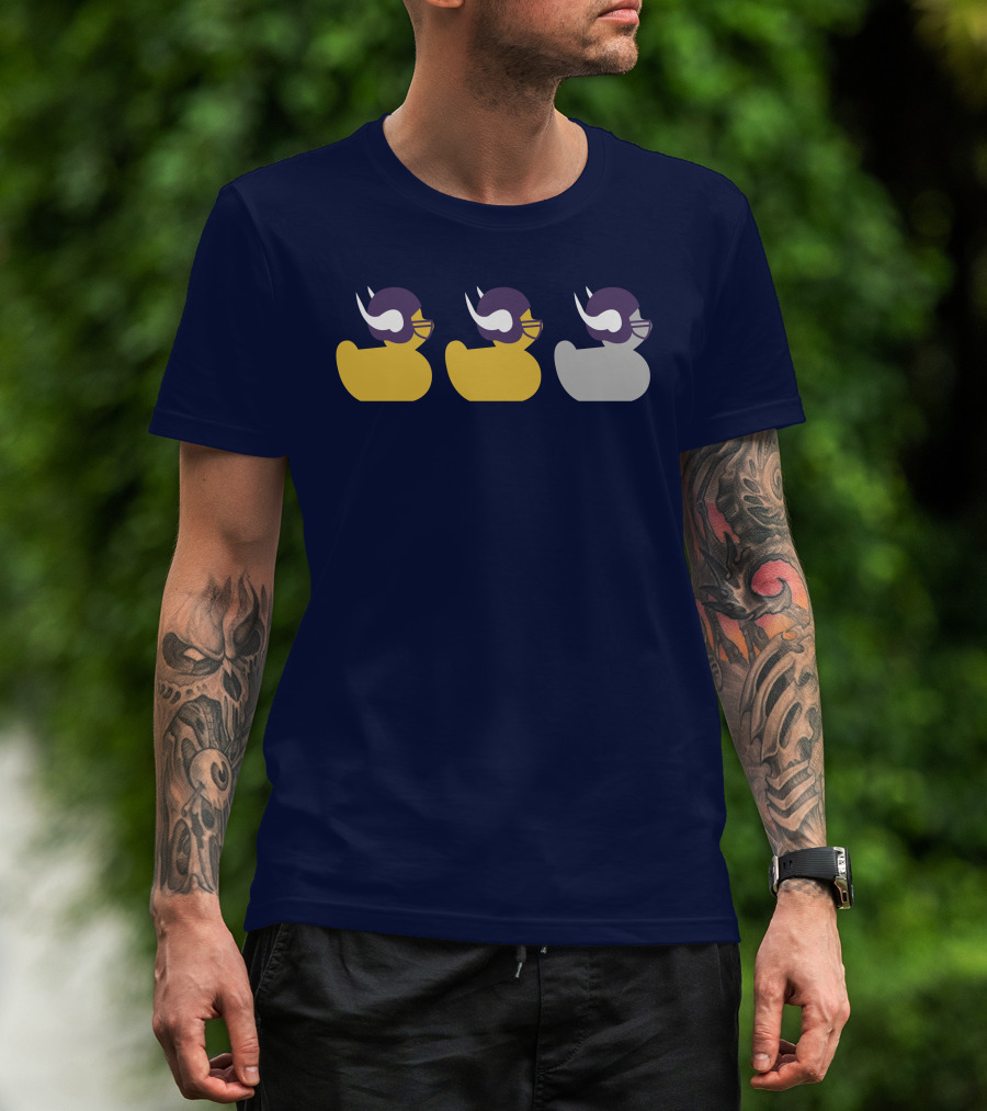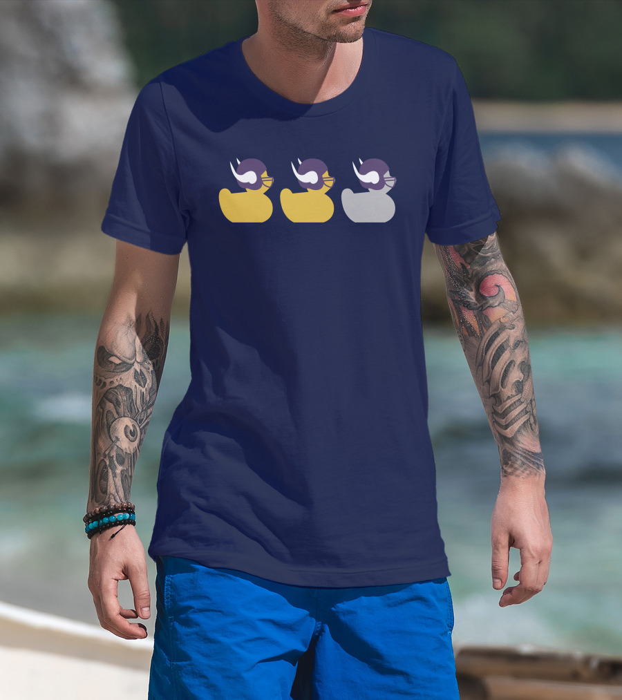 The Duck Duck Grey Duck Vikings T-shirt is designed for everyday wear and a consistent fit. Fabric is pre-shrunk ring-spun cotton with durable stitching. See the size chart below for exact measurements.