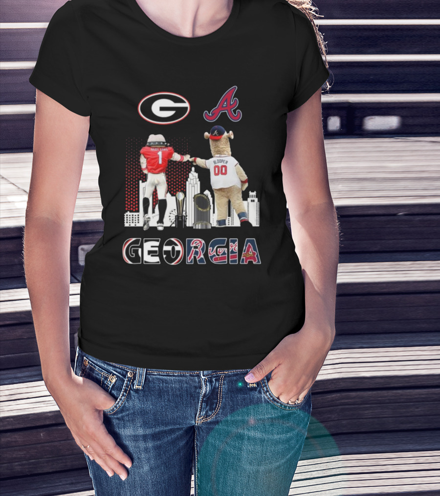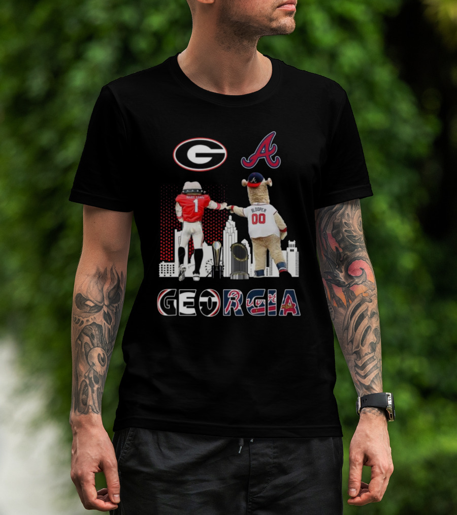 Georgia Bulldogs Braves Blooper Mascots Skyline T-Shirt