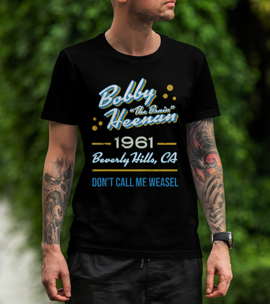 The Bobby The Brain Heenan 1961 Beverly Hills CA Don't Call Me Weasel T-shirt is designed for everyday wear and a consistent fit. Fabric is pre-shrunk ring-spun cotton with durable stitching. See the size chart below for exact measurements.