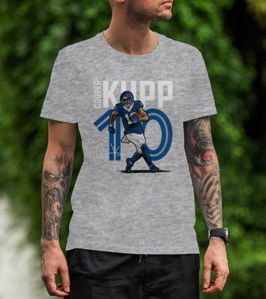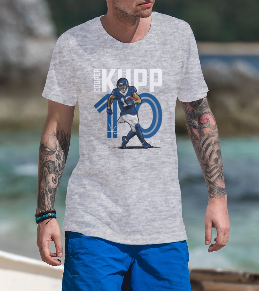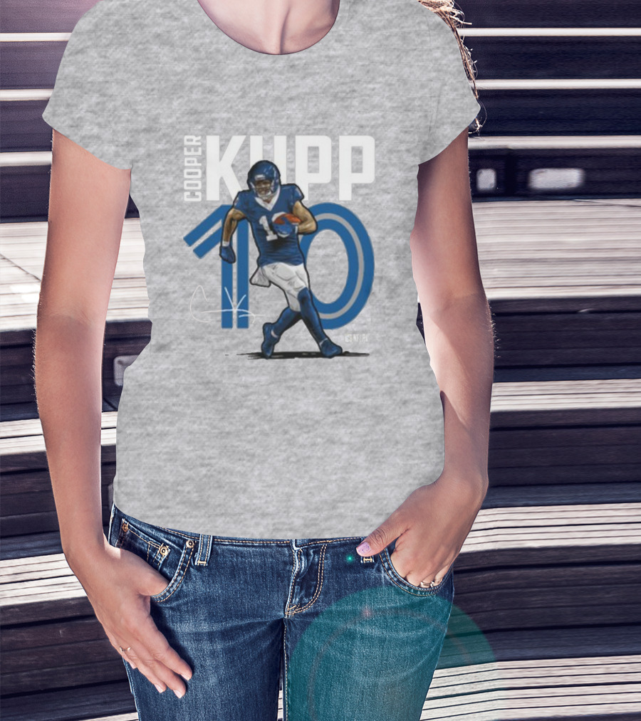 The Cooper Kupp NFLPA 10 T-shirt is designed for everyday wear and a consistent fit. Fabric is pre-shrunk ring-spun cotton with durable stitching. See the size chart below for exact measurements.