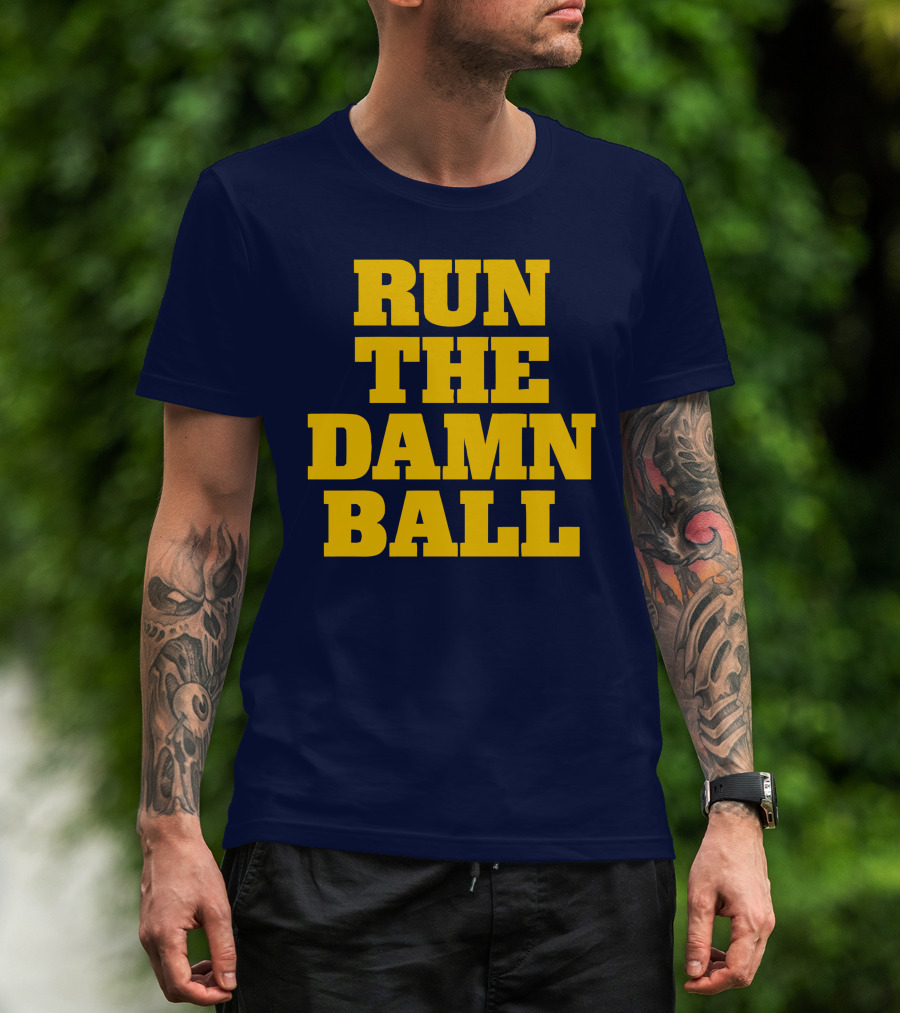 RUN THE DAMN BALL Michigan OL Football Fan T-Shirt