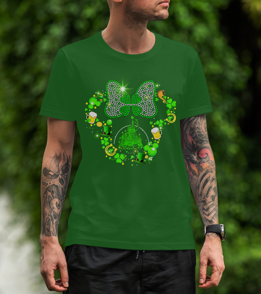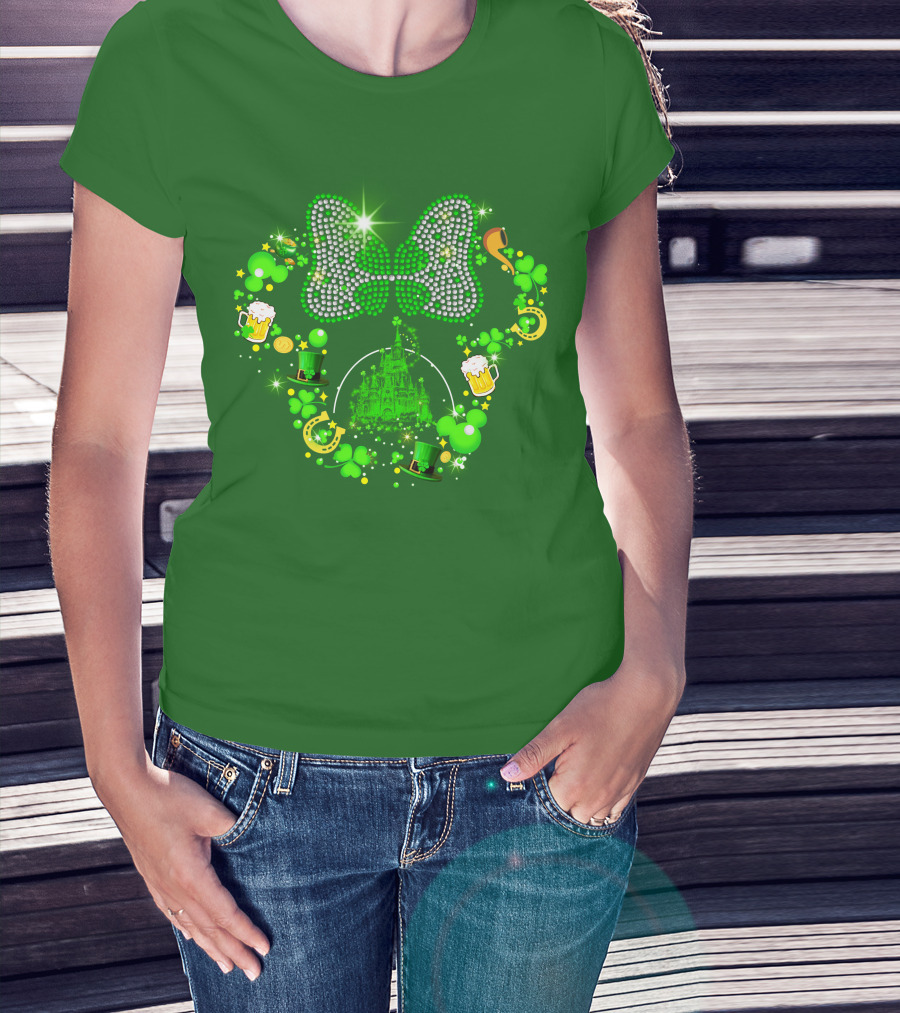 Minnie Head St Patrick's Day Shamrock Castle Bow Irish Beer Hat Luck T-Shirt