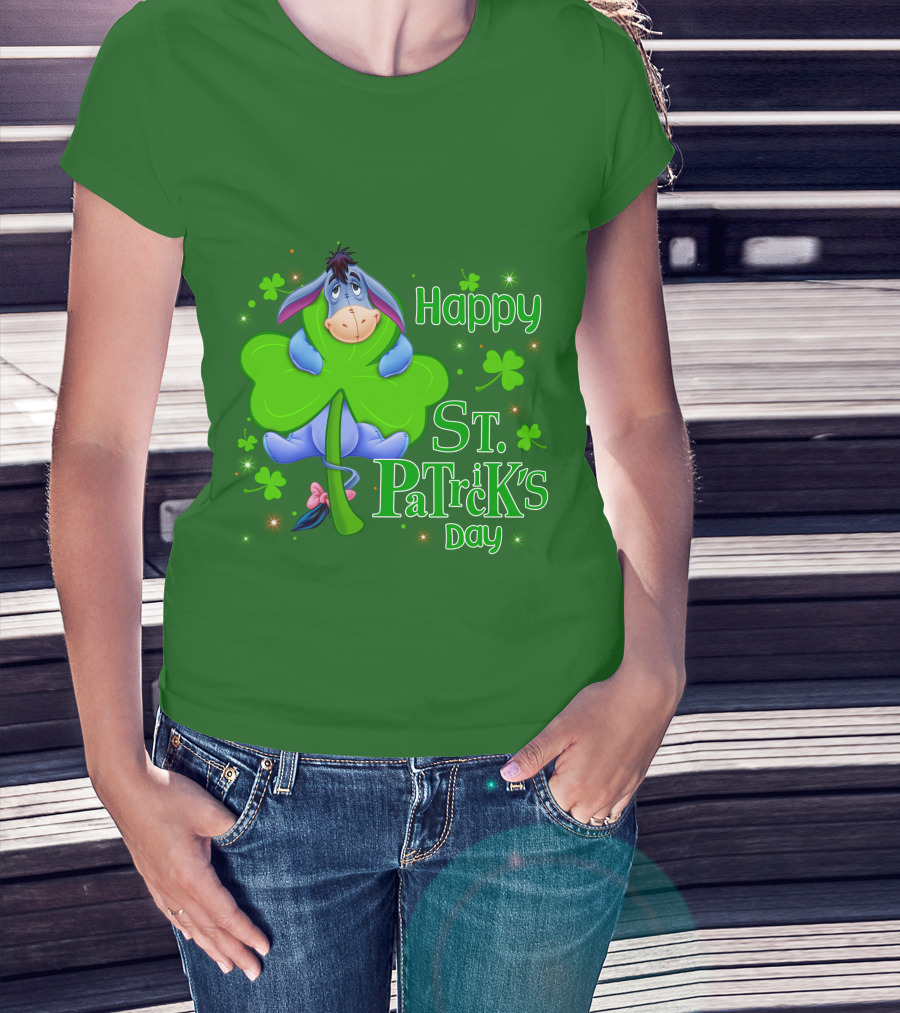 The Happy Eeyore St. Patrick's Day T-shirt is designed for everyday wear and a consistent fit. Fabric is pre-shrunk ring-spun cotton with durable stitching. See the size chart below for exact measurements.