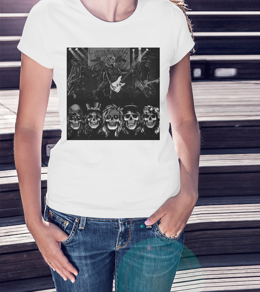 Guns N' Roses Skeleton Band Members Rock Concert Scene T-Shirt