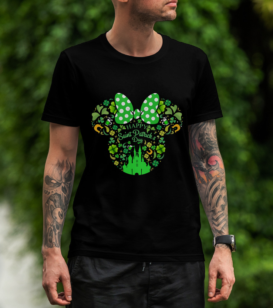 Happy Saint Patrick's Day Minnie Mouse Castle Clover Bow Beer T-Shirt