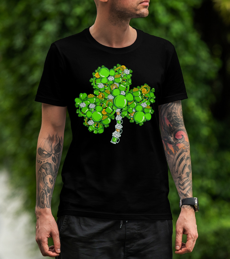Shamrock Mickey Mouse St. Patrick's Day Beer Mugs And Gold Coins T-Shirt