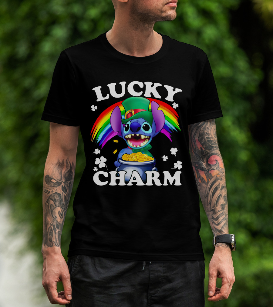 Lucky Charm Stitch Rainbow Gold Coins Shamrocks T-Shirt