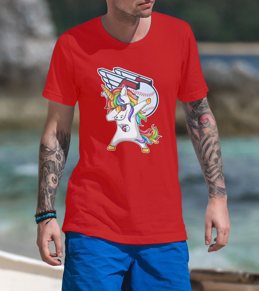 The Cleveland Guardians Baseball Unicorn Dabbing with Winged Ball T-shirt is designed for everyday wear and a consistent fit. Fabric is pre-shrunk ring-spun cotton with durable stitching. See the size chart below for exact measurements.