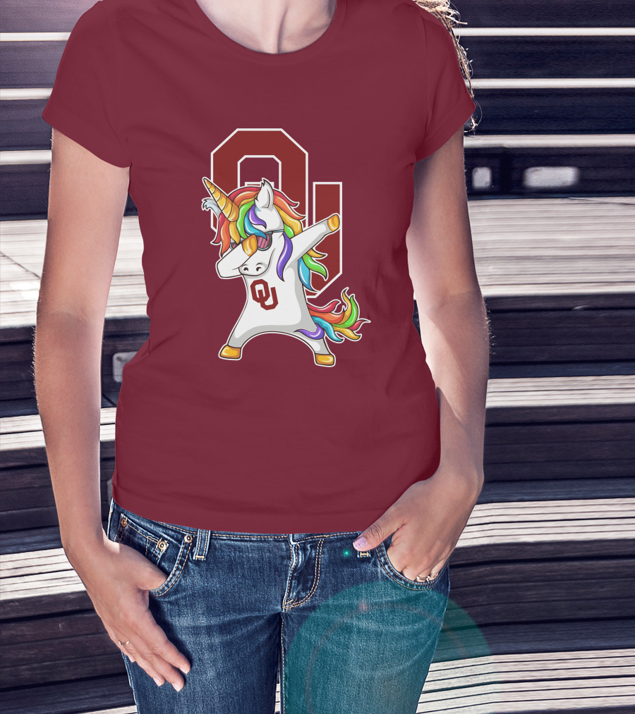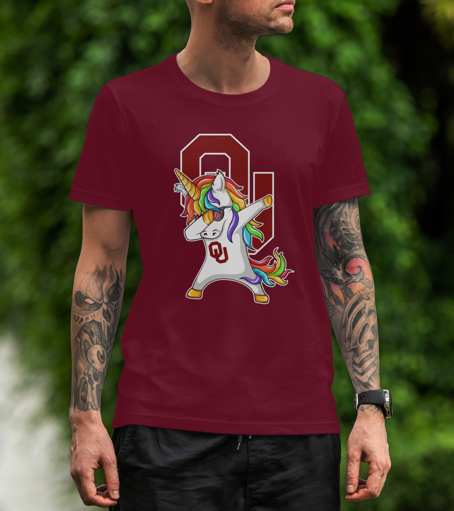 Oklahoma Sooners OU Logo Rainbow Unicorn Dabbing T-Shirt