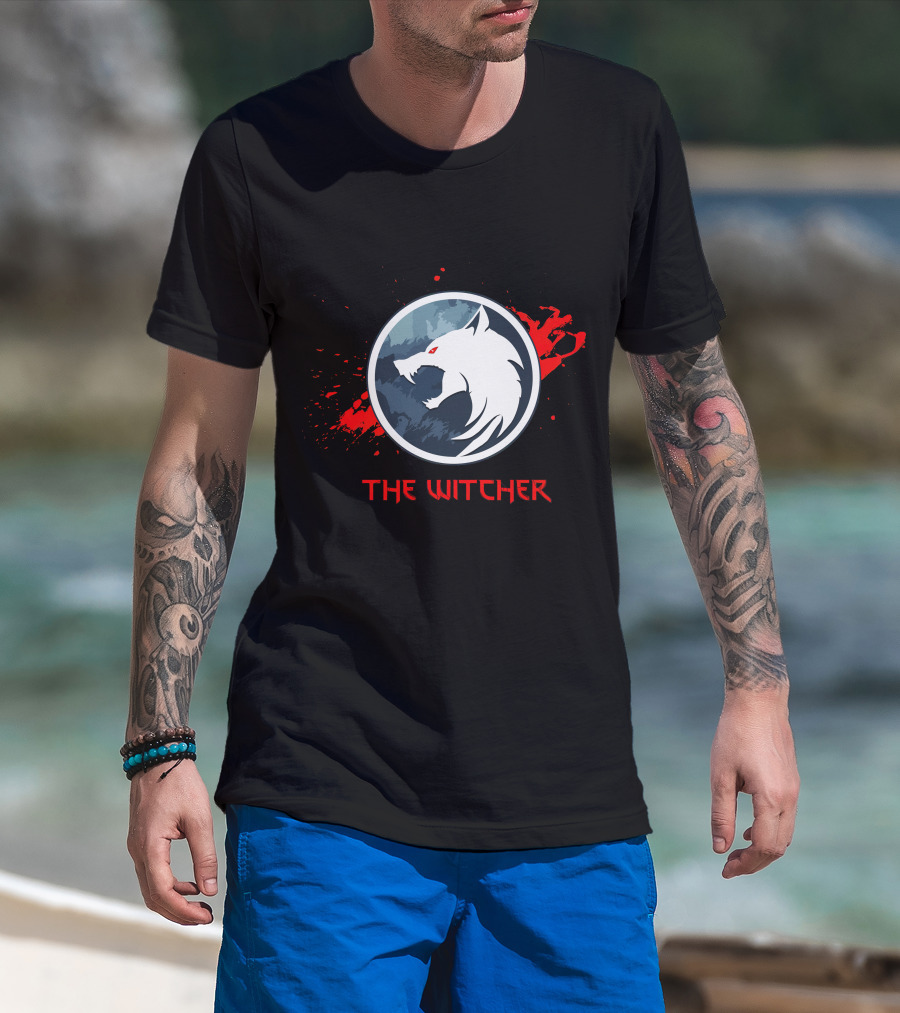 The Witcher Wolf Emblem Blood Splatter T-Shirt