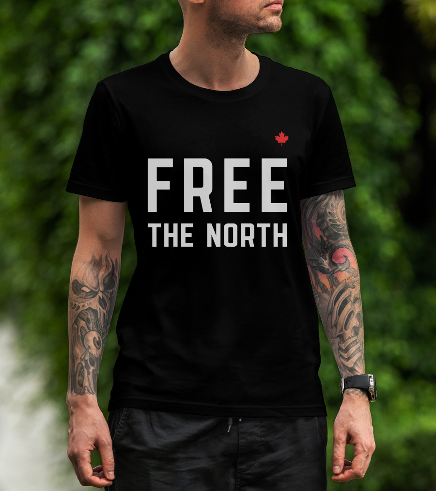 The DanGerCat2 Canada Truckers for Freedom Free the North Maple Leaf T-shirt is designed for everyday wear and a consistent fit. Fabric is pre-shrunk ring-spun cotton with durable stitching. See the size chart below for exact measurements.