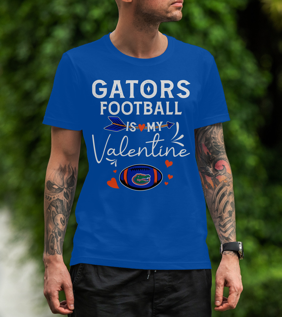 The Gators Football Is My Valentine T-shirt is designed for everyday wear and a consistent fit. Fabric is pre-shrunk ring-spun cotton with durable stitching. See the size chart below for exact measurements.
