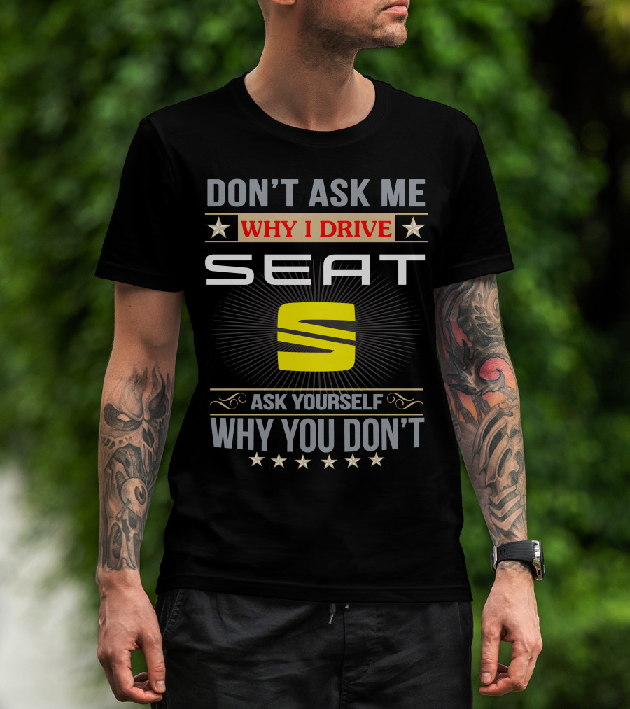 The DON'T ASK ME WHY I DRIVE SEAT ASK YOURSELF WHY YOU DON'T T-shirt is designed for everyday wear and a consistent fit. Fabric is pre-shrunk ring-spun cotton with durable stitching. See the size chart below for exact measurements.