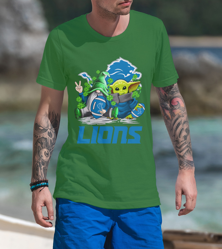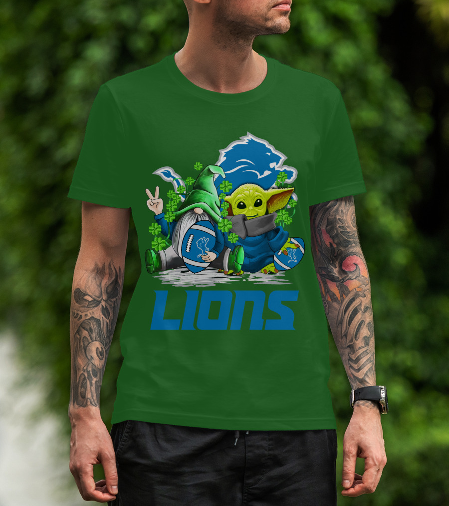 Detroit Lions St. Patrick's Day Gnome And Yoda Football T-Shirt