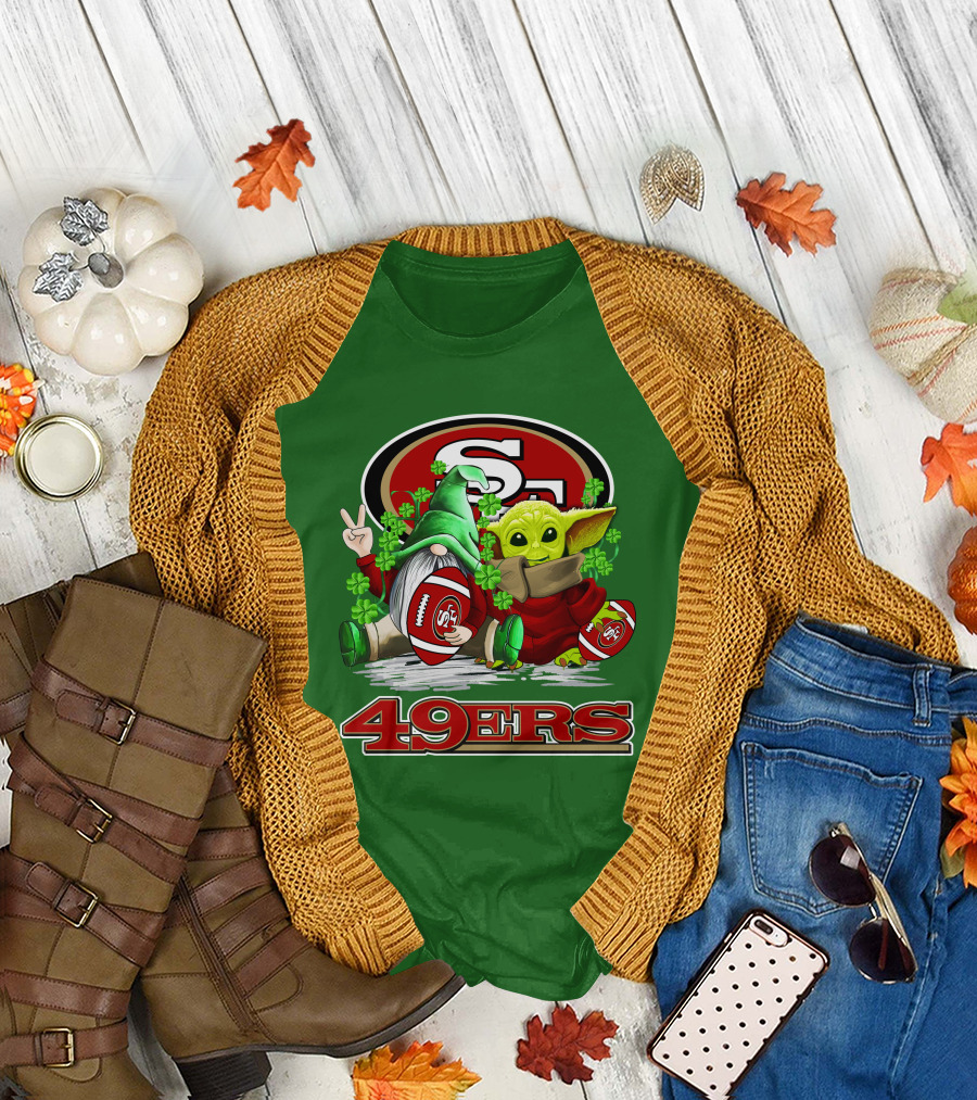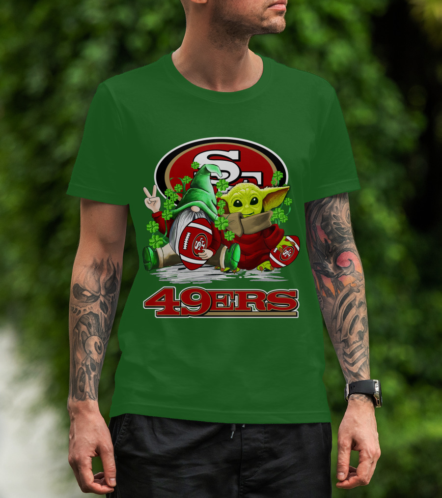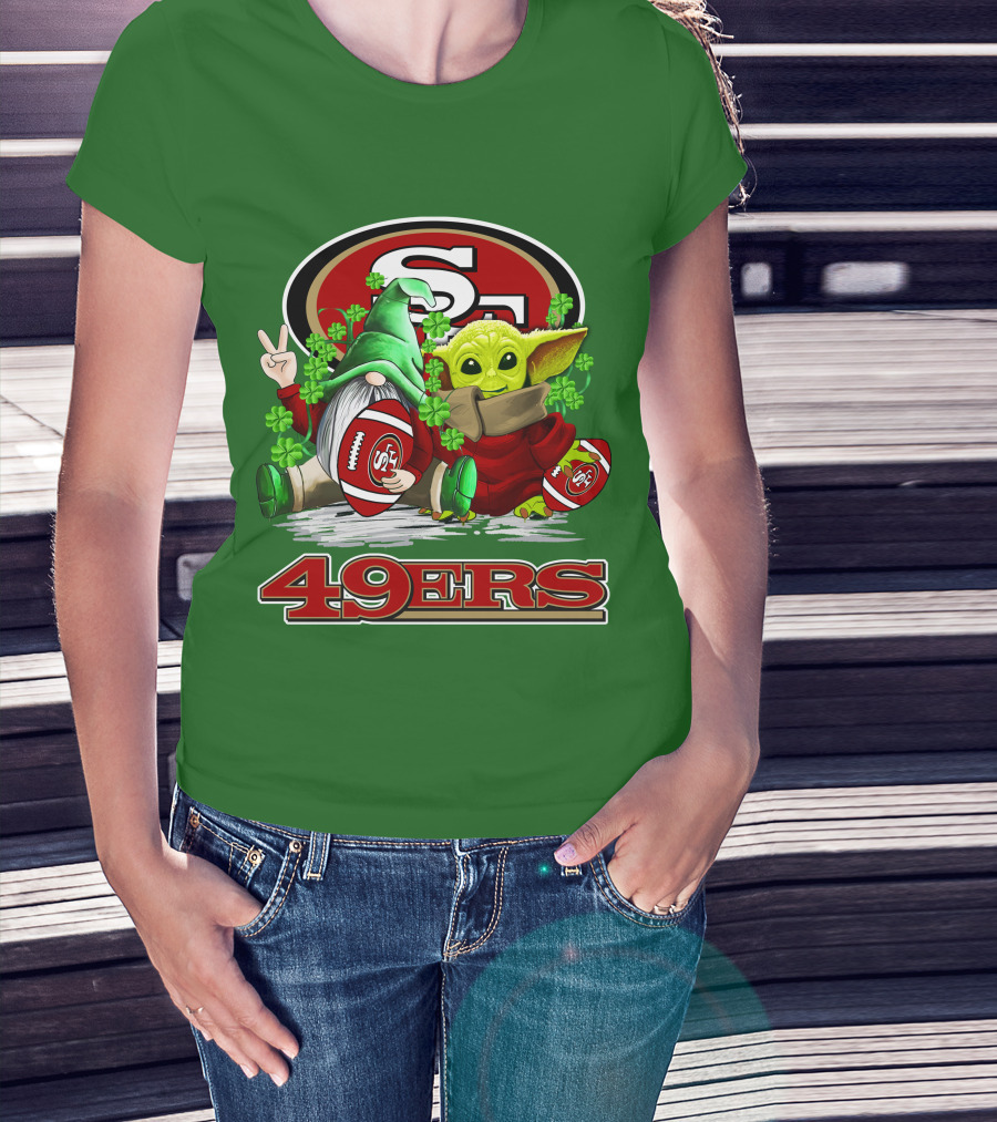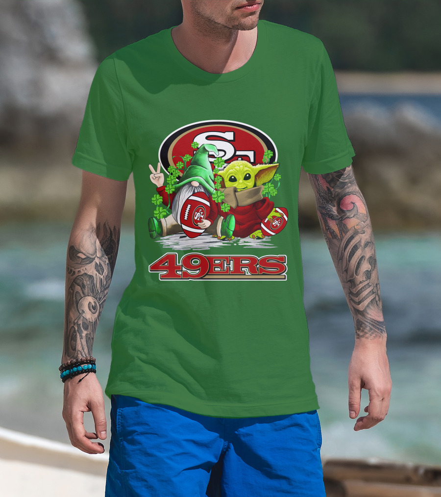 San Francisco 49ers Football St. Patrick's Day Gnome And Baby Yoda 49ers T-Shirt