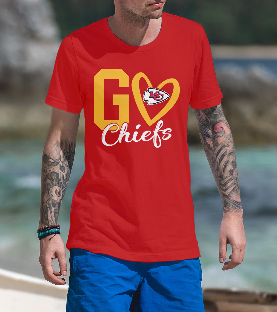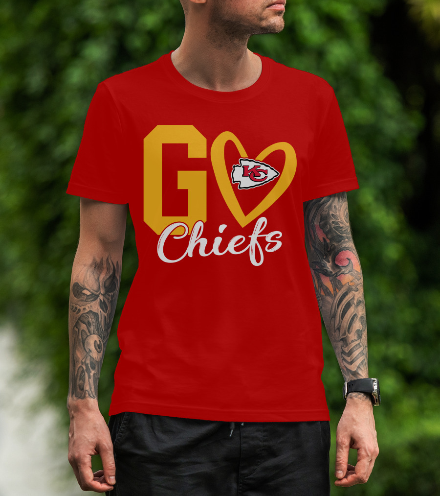 The Go Chiefs KC Heart T-shirt is designed for everyday wear and a consistent fit. Fabric is pre-shrunk ring-spun cotton with durable stitching. See the size chart below for exact measurements.