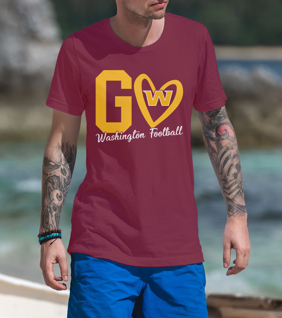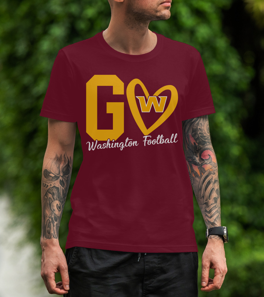 The Go W Washington Football Team Heart T-shirt is designed for everyday wear and a consistent fit. Fabric is pre-shrunk ring-spun cotton with durable stitching. See the size chart below for exact measurements.