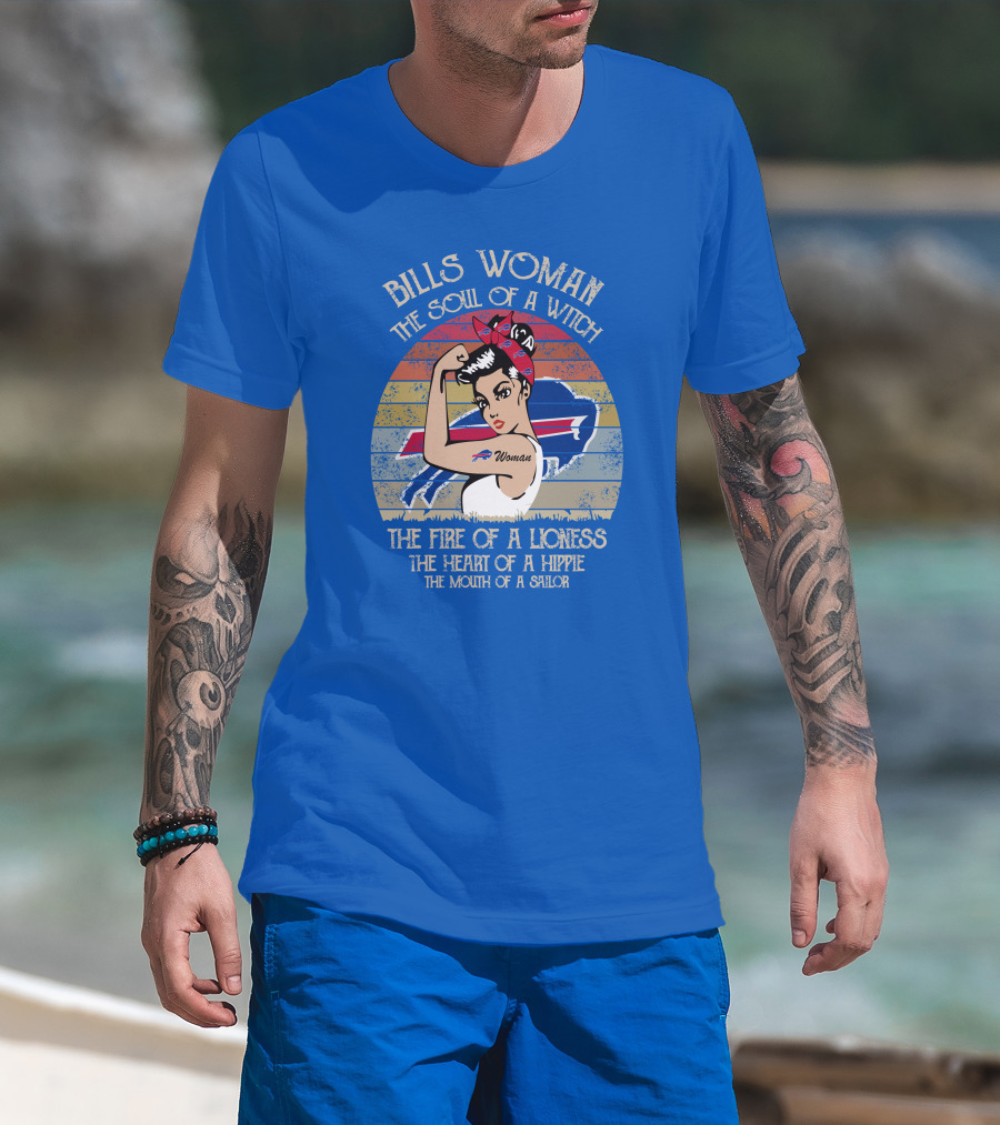 The Bills Woman The Soul of a Witch The Fire of a Lioness The Heart of a Hippie The Mouth of a Sailor T-shirt is designed for everyday wear and a consistent fit. Fabric is pre-shrunk ring-spun cotton with durable stitching. See the size chart below for exact measurements.