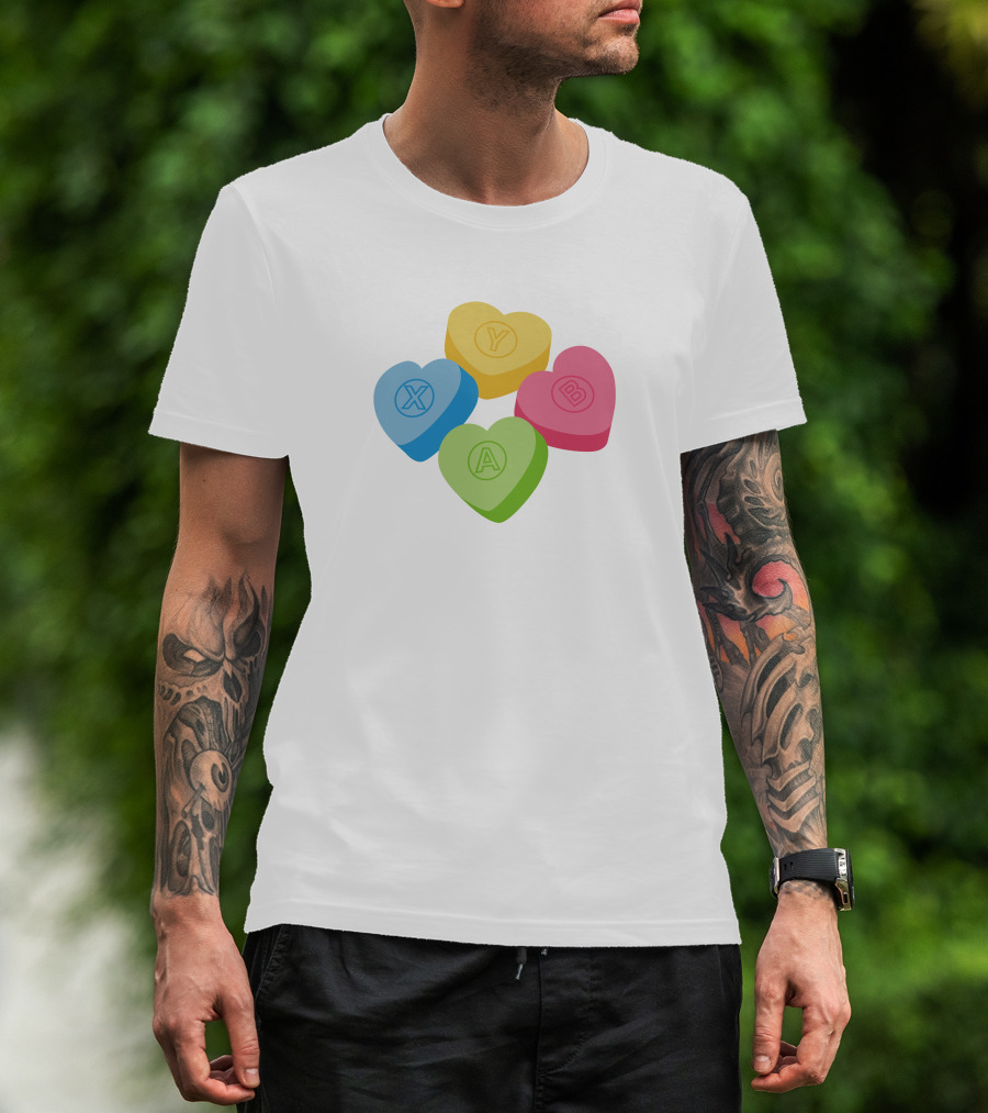 X Y A B Candy Hearts Valentine's Crew Neck T-Shirt