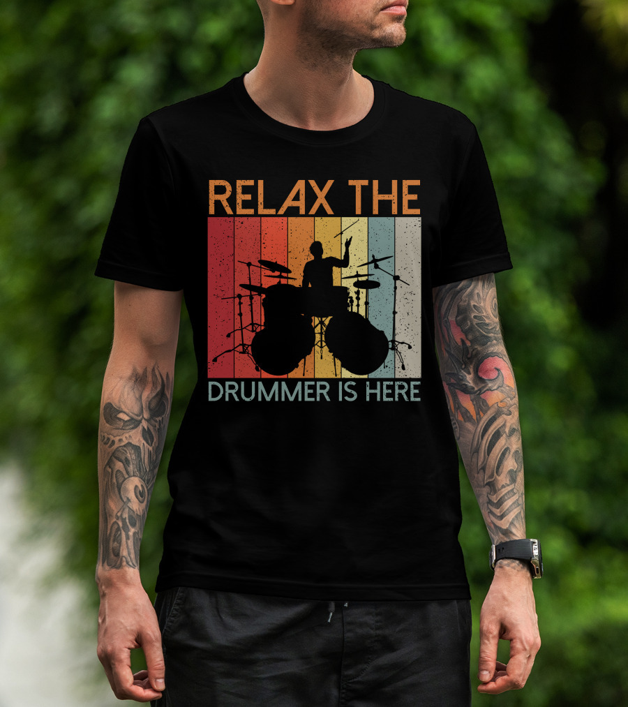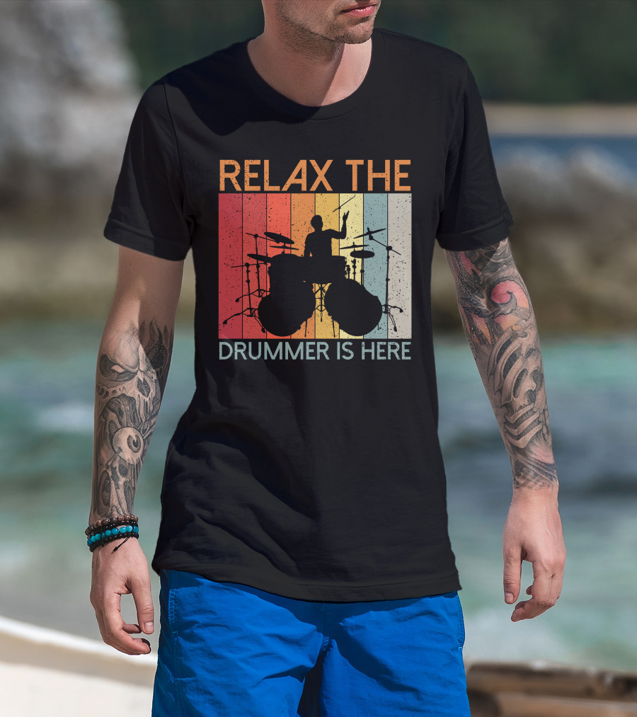 The Relax The Drummer Is Here Vintage T-shirt is designed for everyday wear and a consistent fit. Fabric is pre-shrunk ring-spun cotton with durable stitching. See the size chart below for exact measurements.