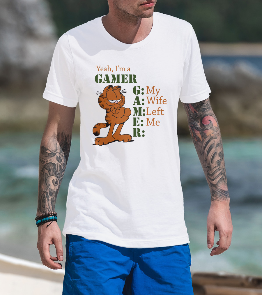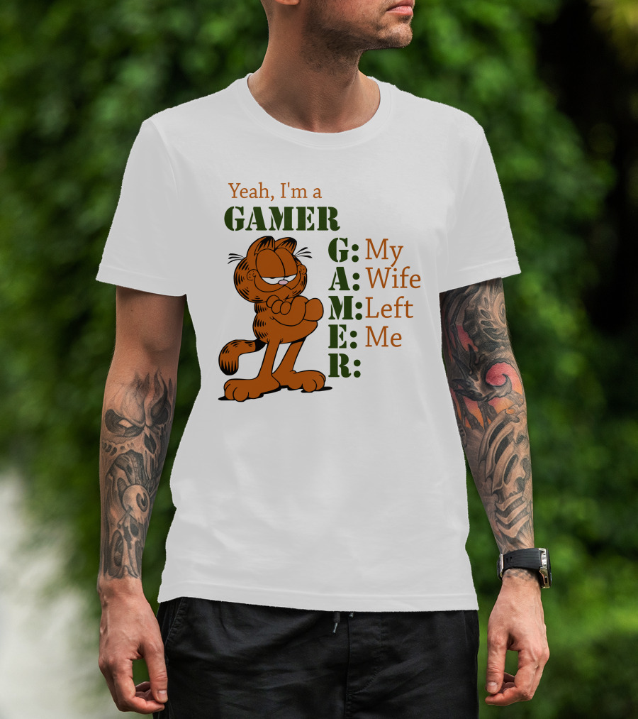 Yeah I'm A Gamer My Wife Left Me Garfield T-Shirt