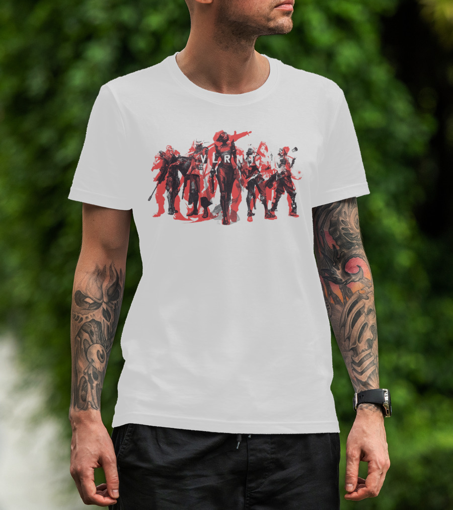 The Valorant Agent Character Lineup Merch T-shirt is designed for everyday wear and a consistent fit. Fabric is pre-shrunk ring-spun cotton with durable stitching. See the size chart below for exact measurements.